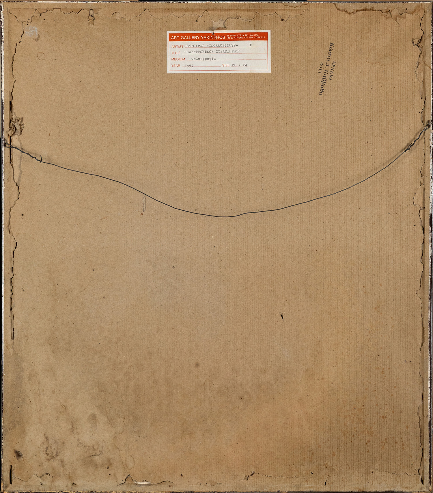 Χαλκογραφία, 275 x 233 mm. Έκδοση σε 13 αντίτυπα, αρίθμηση και υπογραφή στο κάτω περιθώριο με μολύβι, υπογραφή με αρχικά στην πλάκα. Σε κορνίζα.
