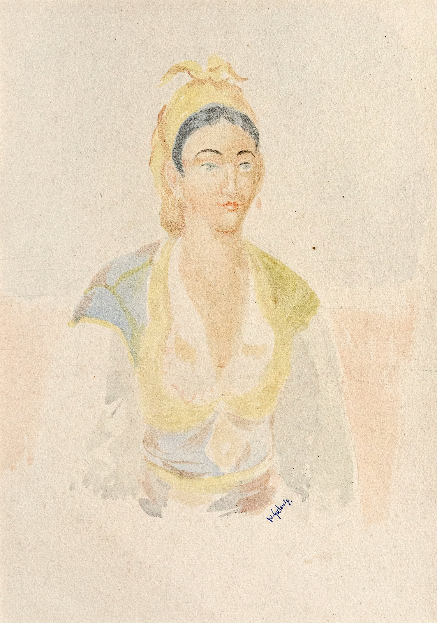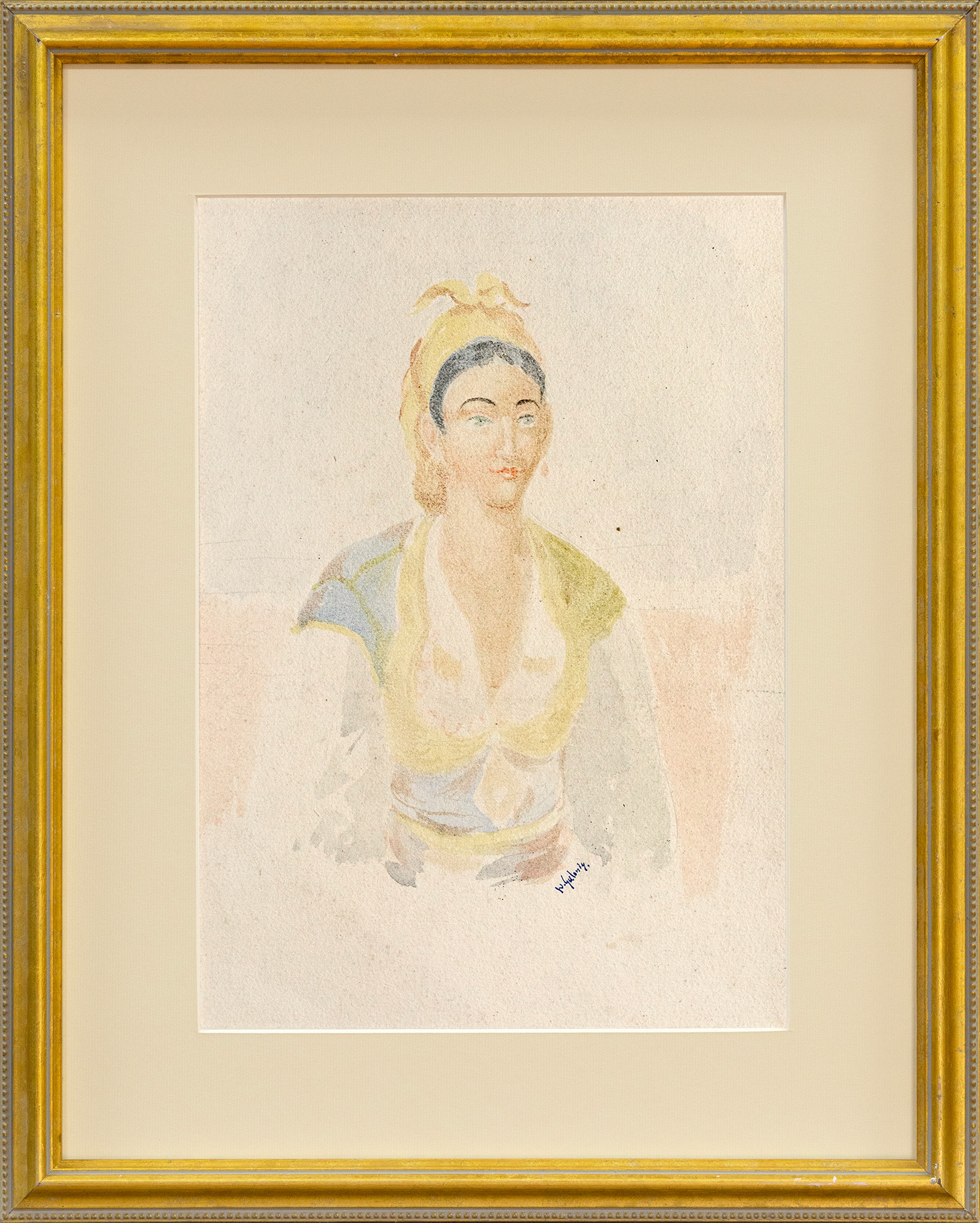 Υδατογραφία σε χαρτί, 360 x 260 mm. Με τη σφραγίδα του εργαστηρίου του καλλιτέχνη κάτω δεξιά. Σε κορνίζα.