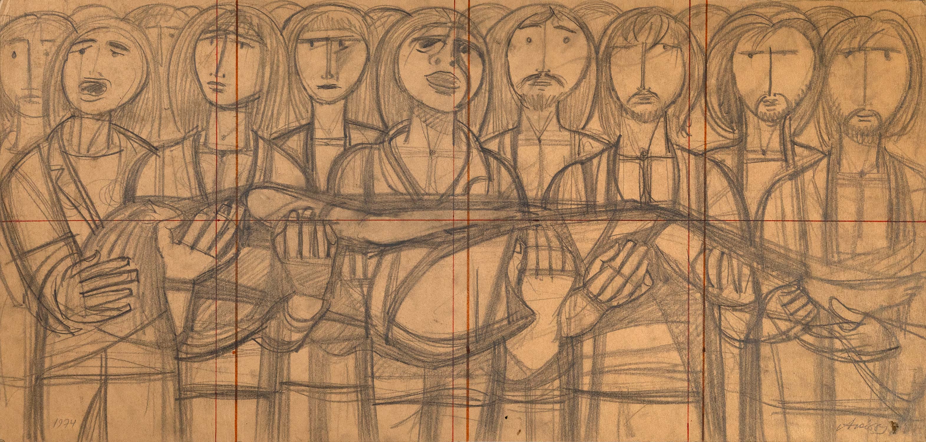 Προσχέδιο γιὰ τὴν ξυλογραφία τοίχου «17 Νοεμβρίου 1973» (1973-1975).