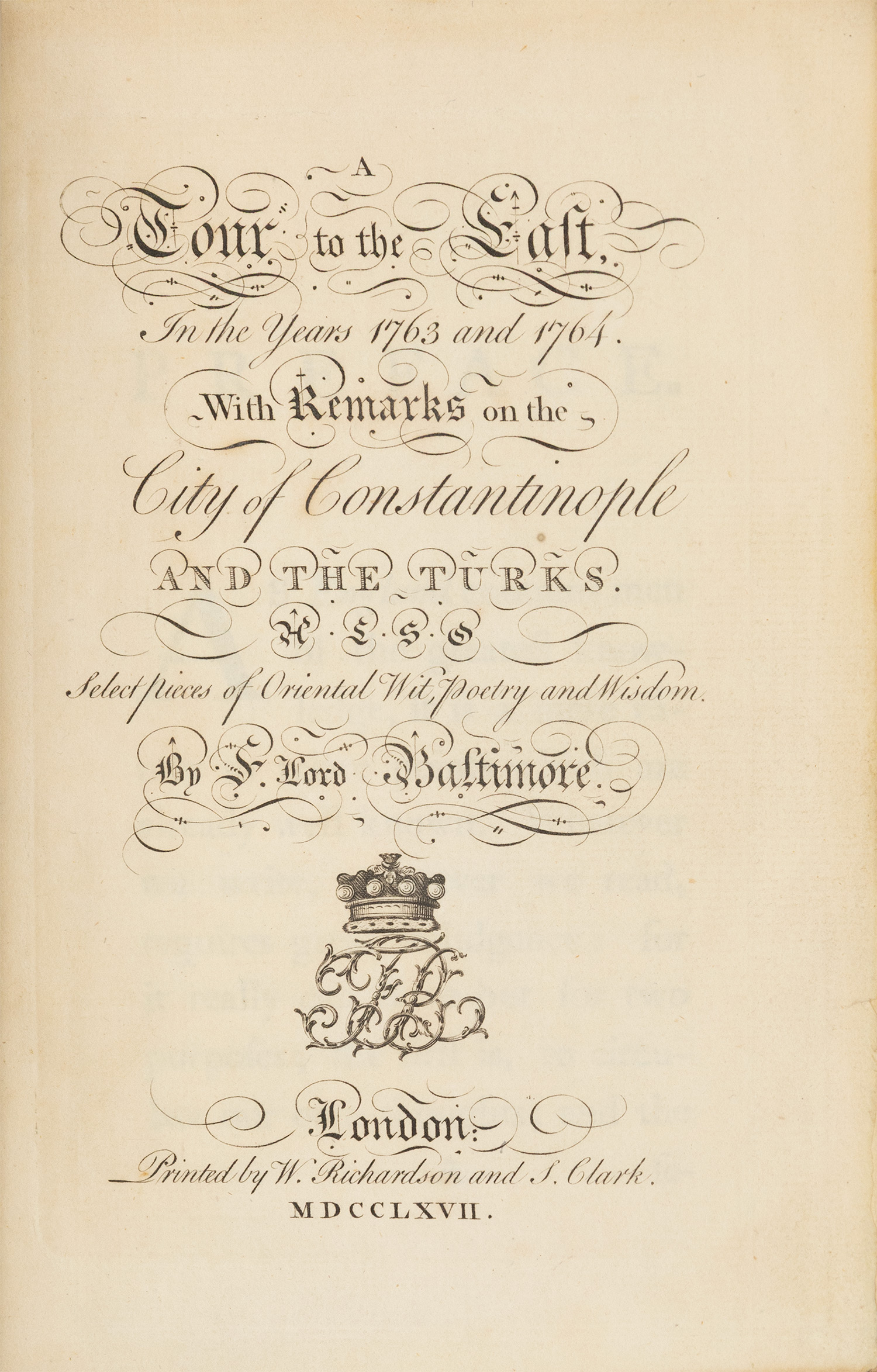 A tour to the East, in the years 1763 and 1764. With remarks on the city of Constantinople and the Turks. Select pieces of Oriental wit, poetry and wisdom.