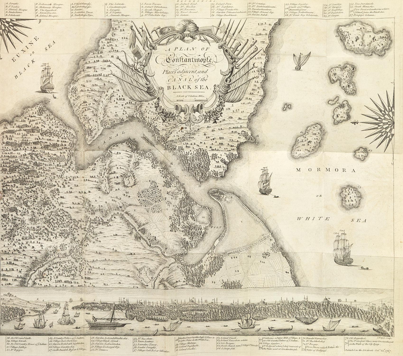 ΠΡΩΤΗ ΕΚΔΟΣΗ. 8ο (180 x 115 mm.), iv + 176 σ. Χαλκόγραφος ο τίτλος, με έναν αναδιπλούμενο χαλκόγραφο χάρτη και 4 χαλκόγραφους πίνακες. Δέρμα της εποχής της έκδοσης (σχισμένες οι ενώσεις, χρυσή διακόσμηση στη ράχη, ex-libris John Molesworth και Α. Δ. Χατζηδήμου). Blackmer 272, Atabey 183, Weber, II, 551.