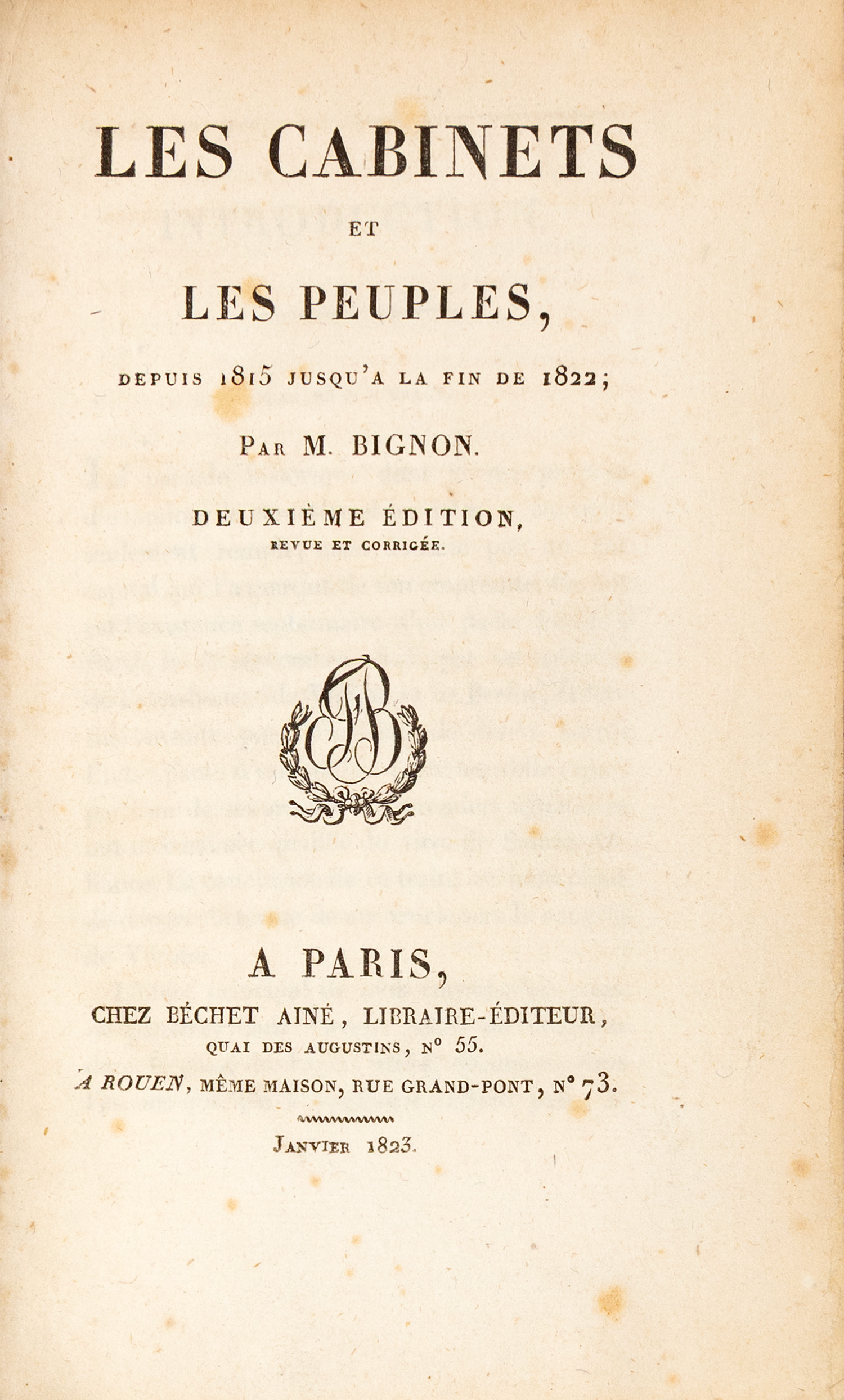 Les cabinets et les peuples depuis 1815 jusqu'a la fin de 1822. Deuxième édition, revue et corrigée.