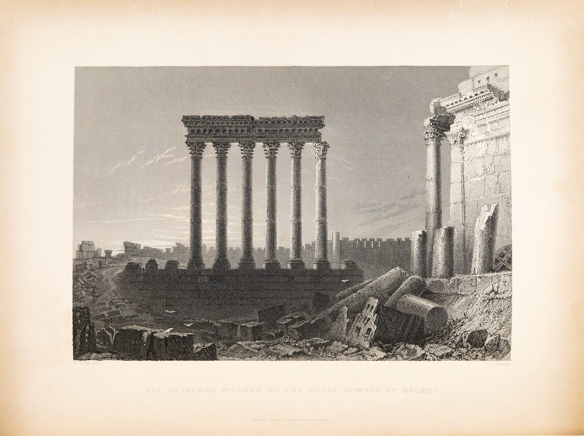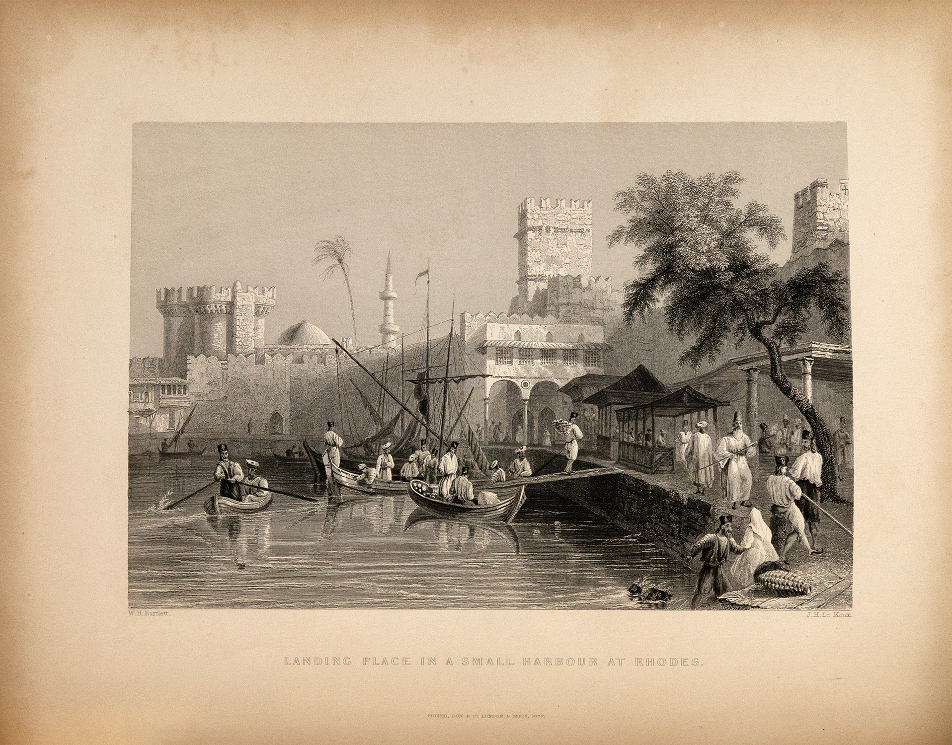 ΠΡΩΤΗ ΕΚΔΟΣΗ. 3 τόμοι δεμένοι σε 2 (οι τόμοι Α΄ και Β΄ δεμένοι μαζί), 4o (262 x 210 mm.), ii + 80, 76 και 100 σ. (ελαφριά οξείδωση σε λίγους πίνακες). Με 3 χαλκόγραφους επιπρόσθετους τίτλους, 2 χαλκόγραφους χάρτες και 117 χαλκόγραφους πίνακες χαραγμένους σε σχέδια των W. H. Bartlett, William Purser και Thomas Allom. Δερμάτινη ράχη της εποχής της έκδοσης (μικρές φθορές, χρυσή και εμπίεστη διακόσμηση στη ράχη, μαρμαρογραφημένα τα καλύμματα και τα ακρόφυλλα, ex-libris Α. Δ. Χατζηδήμου). Blackmer 291, Ioannou σ. 78, Atabey 199, Weber, I, 1125, Contominas 124.