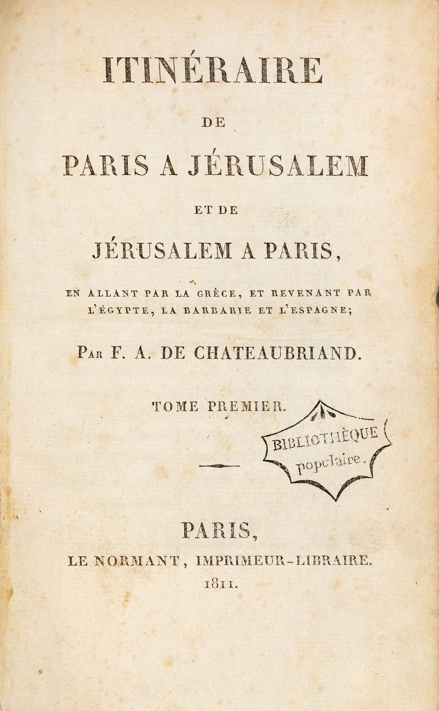 Itinéraire de Paris à Jérusalem et de Jérusalem à Paris, en allant par la Grèce, et revenant par l'Égypte, la Barbarie et l'Espagne.