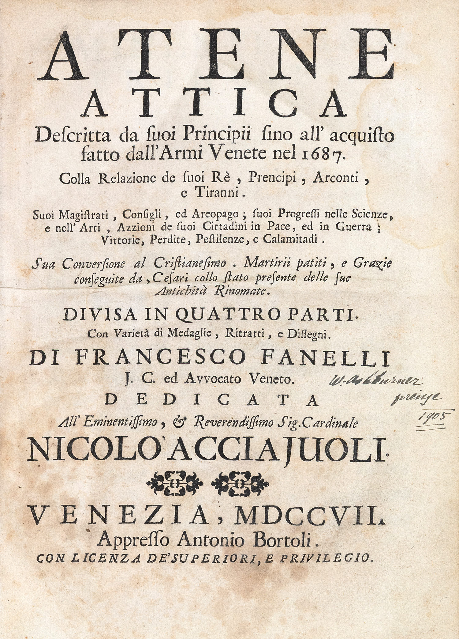 Atene Attica, descritta da suoi principii sino all’acquisto fatto dall’ Armi Venete nel 1687.