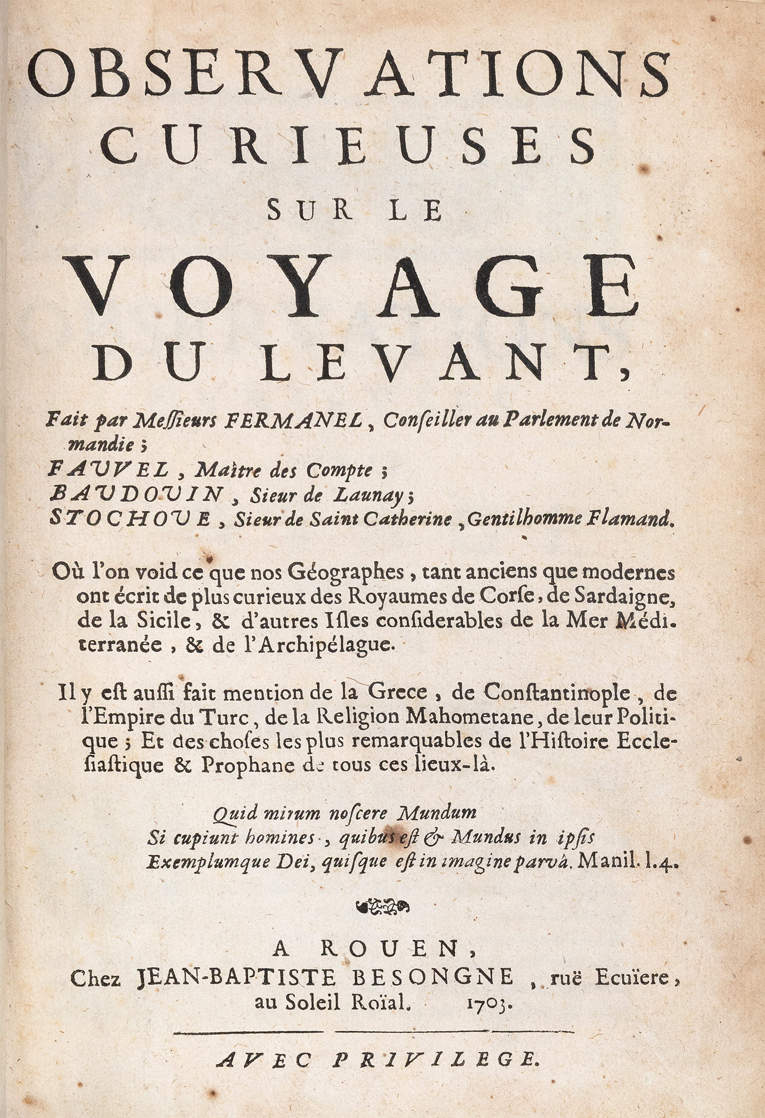 Observations curieuses sur le voyage du Levant, fait par Messieurs Fermanel, Fauvel, Baudouin, Stochove.