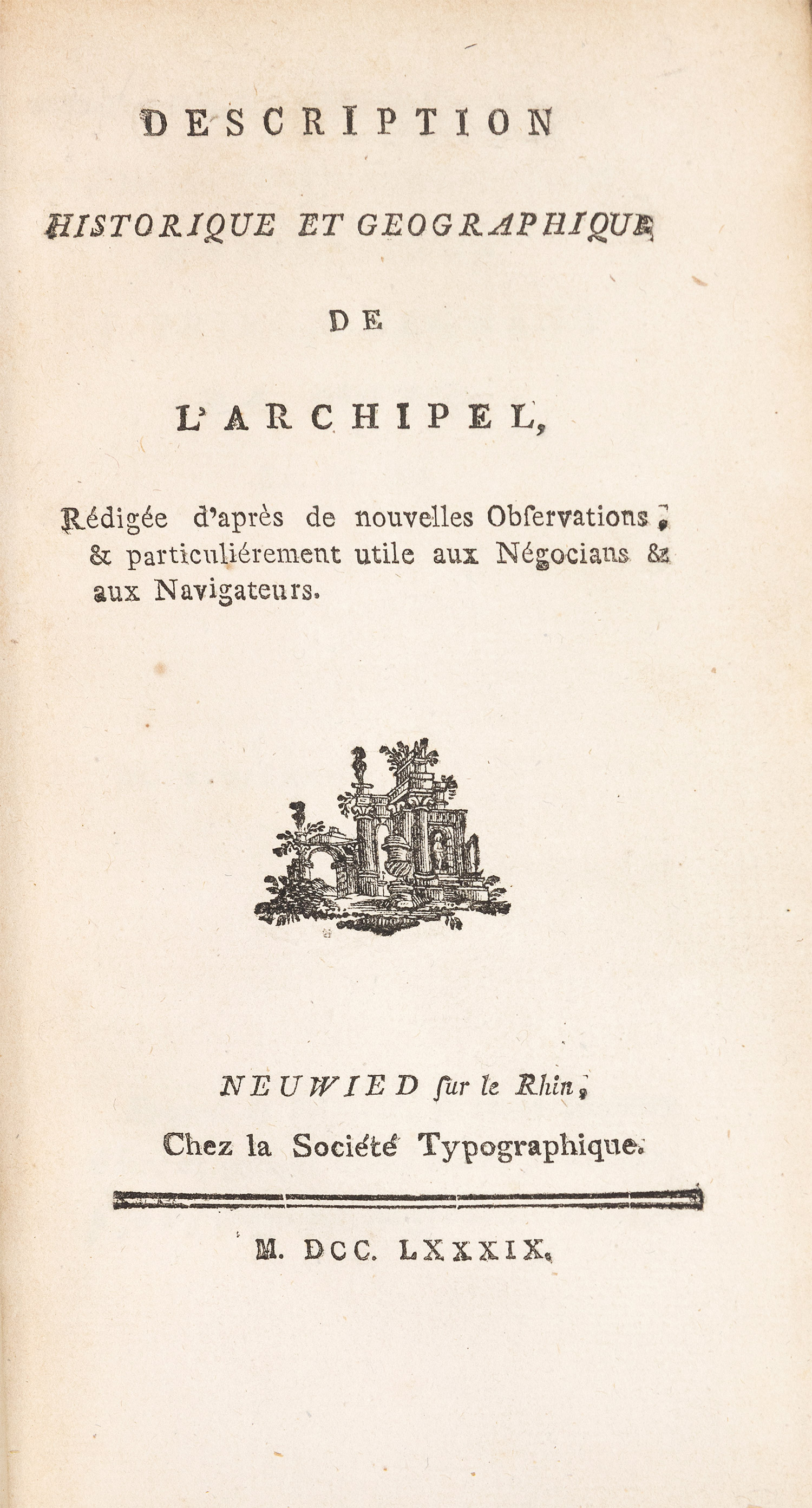 Description historique et geographique de l’Archipel, rédigée d’après de nouvelles observations, & particuliérement utile aux négocians & aux navigateurs.