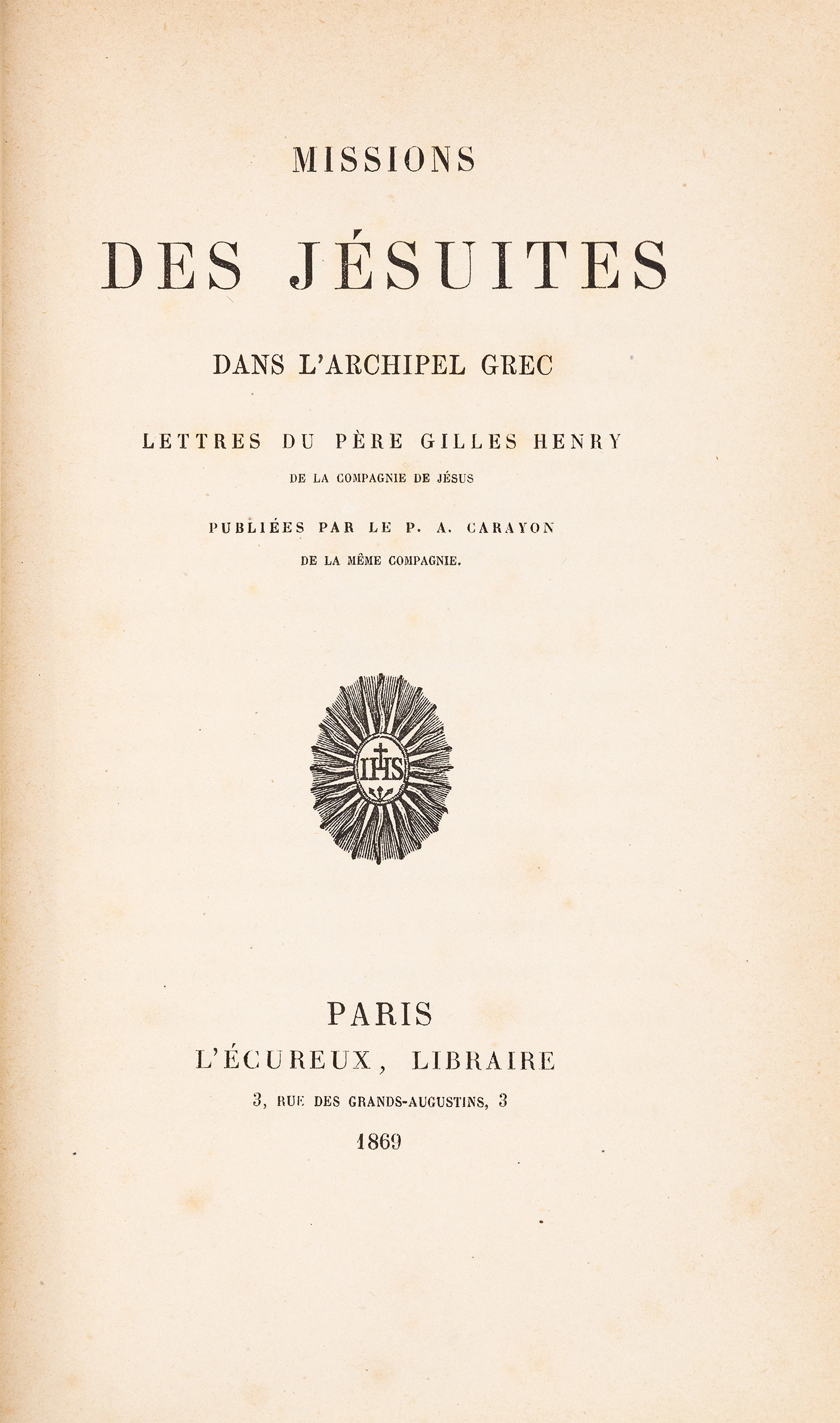 Missions des Jésuites dans l’Archipel Grec. Lettres.