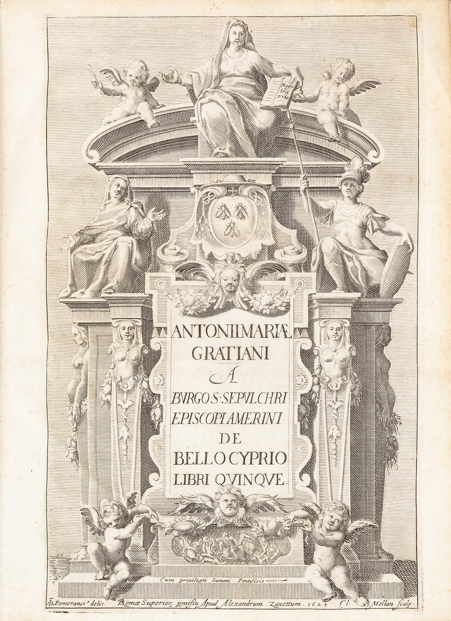 ΠΡΩΤΗ ΕΚΔΟΣΗ. μικρό folio (241 x 184 mm.), 330 σ. (ήπια ομοιόμορφη οξείδωση σε αρκετά φύλλα). Χαλκόγραφος αρχιτεκτονικός τίτλος, ξυλόγραφο τυπογραφικό σήμα στο τελευταίο φύλλο. Περγαμηνή της εποχής της έκδοσης (λίγο λερωμένη, ex-libris Α. Δ. Χατζηδήμου). Blackmer 726, Ioannou σ. 216, Cobham & Jeffery σ. 24.