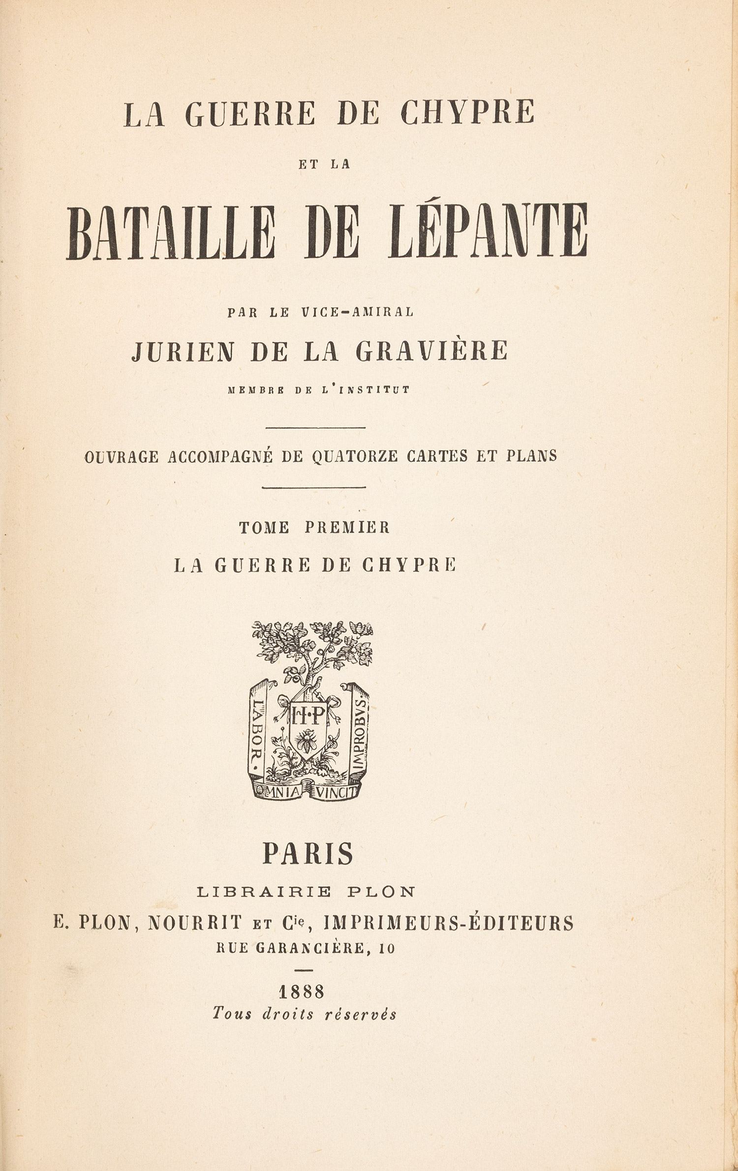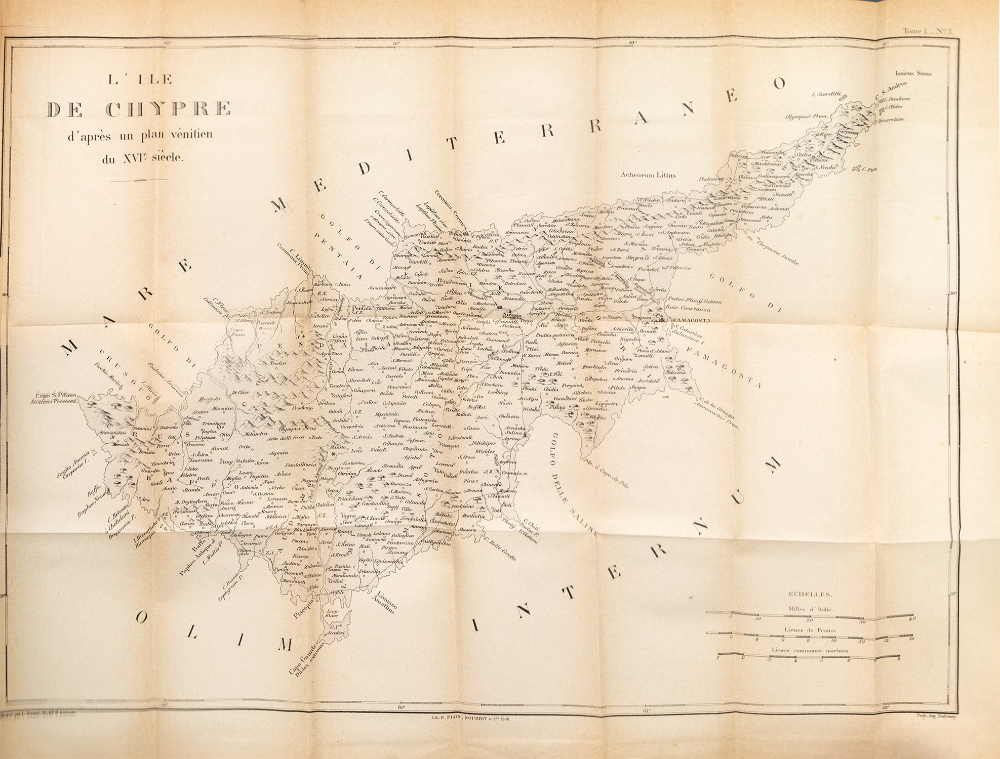 2 τόμοι, 18ο (183 x 118), XLVI + 198 και 262 σ. (σχίσιμο σε έναν χάρτη). Με 6 (από τους δεκατέσσερεις) αναδιπλούμενους χάρτες. Πάνινη ράχη της εποχής της έκδοσης (μικρές φθορές, μαρμαρογραφημένα τα ακρόφυλλα, αξάκριστο, ex-libris Α. Δ. Χατζηδήμου). (2)