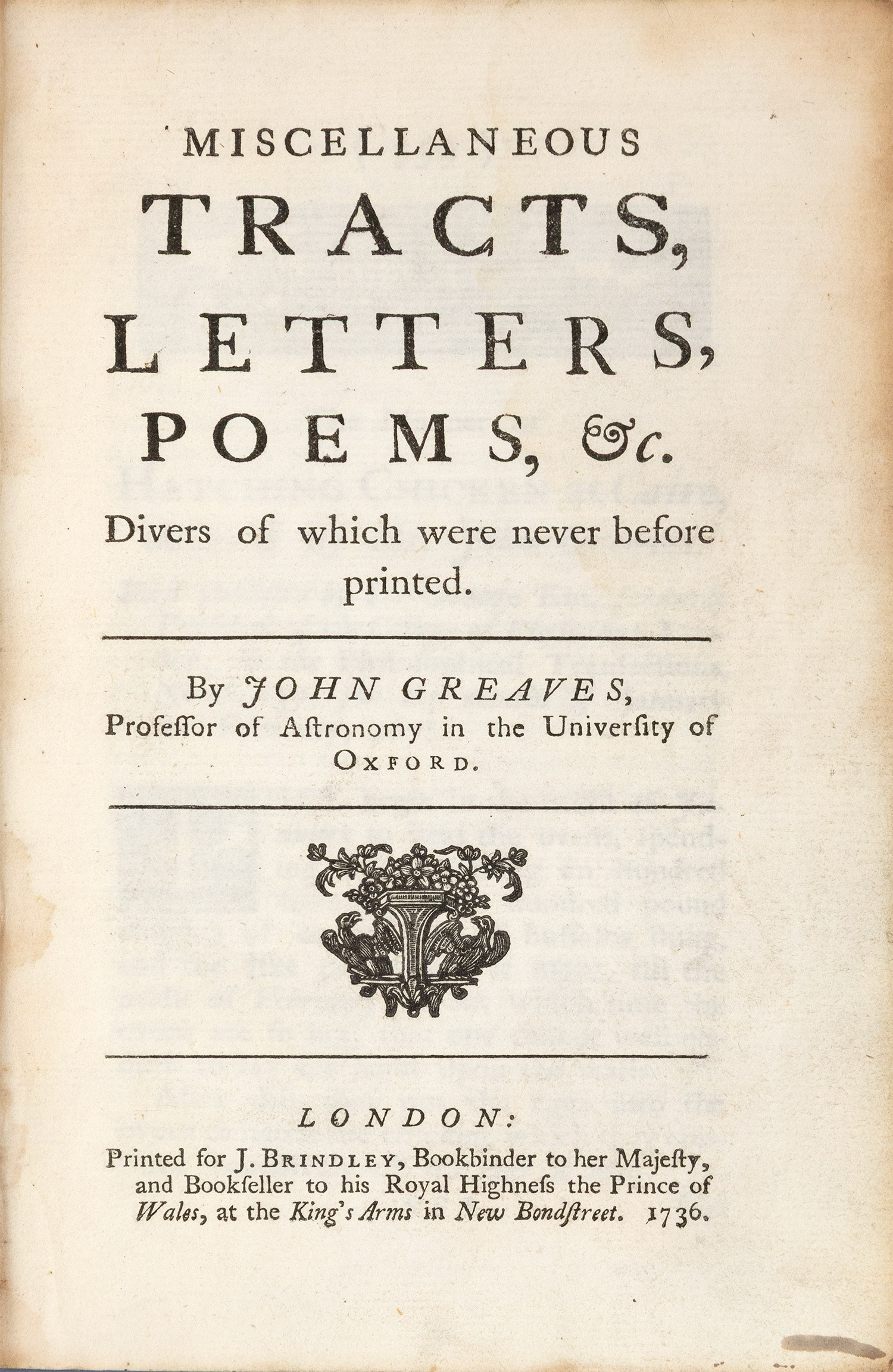 Miscellaneous works of Mr. John Greaves, professor of astronomy in the University of Oxford, many of which are now first published.