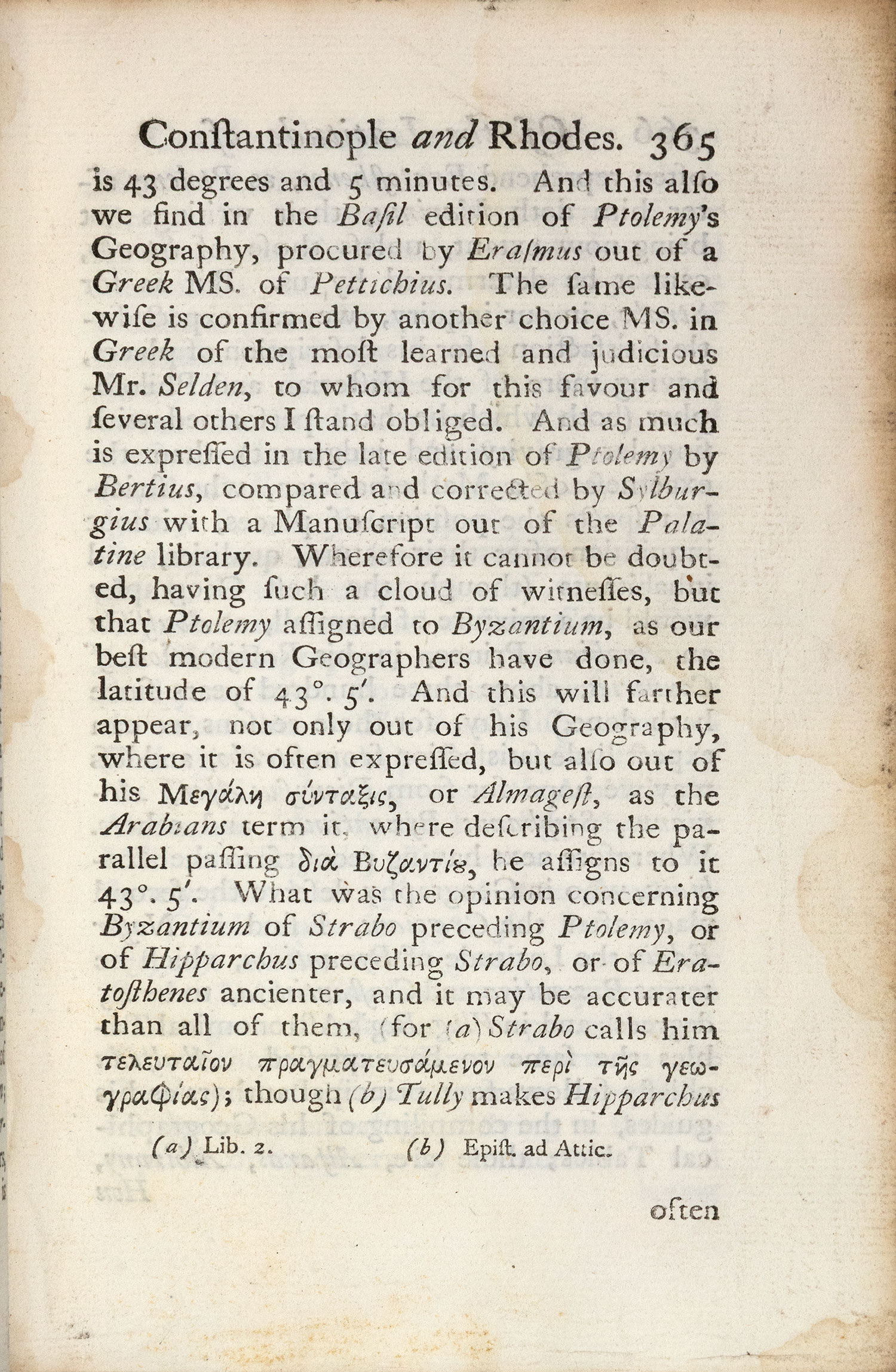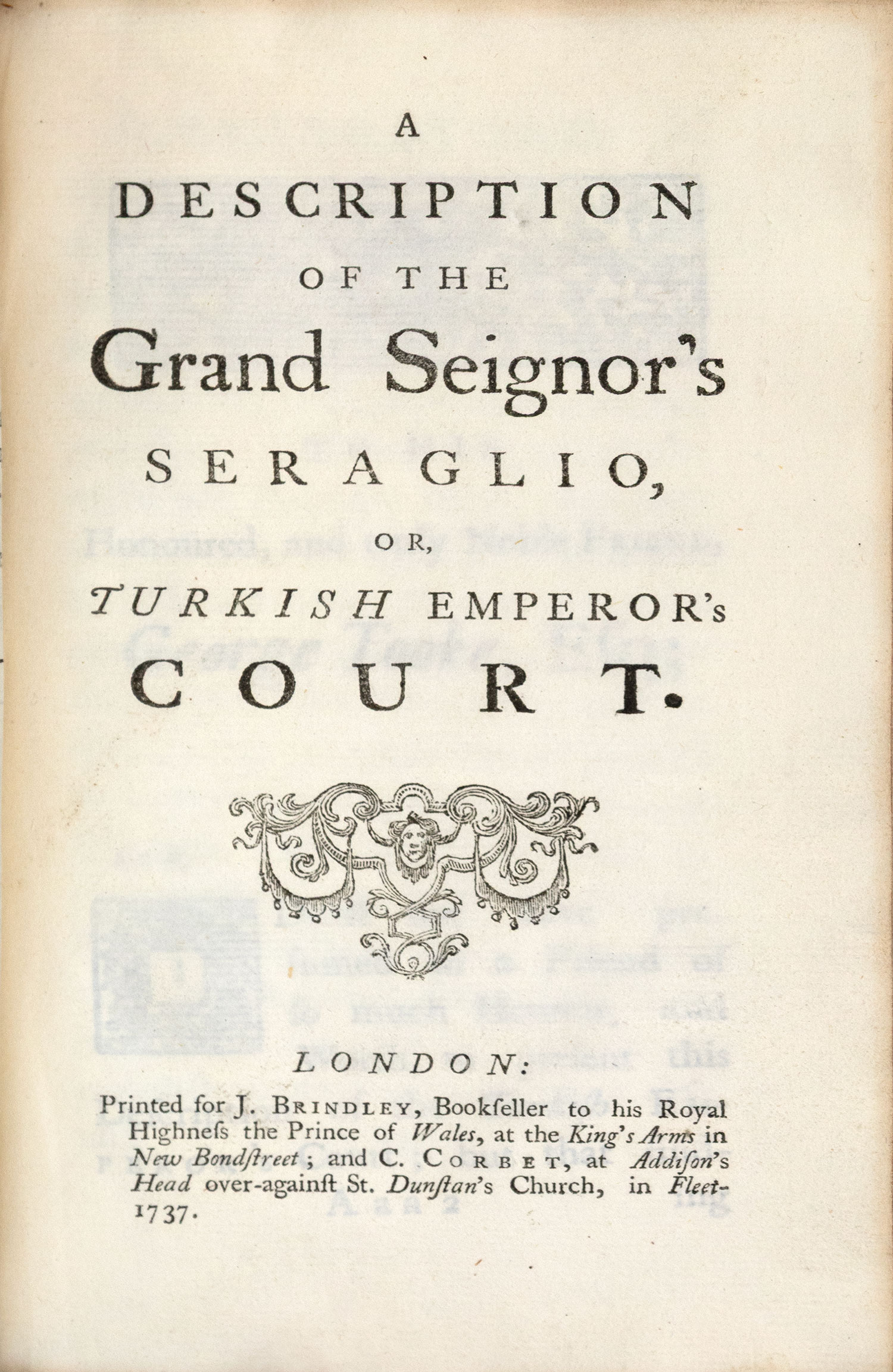 ο τόμος Β΄ (από τους 2), 8ο, [2] + (359)-540 + [6] + (591)-800 σ. (λείπει ο γενικός τίτλος). Επιμέρους τίτλοι («Miscellaneous tracts, letters, poems, etc.», και «A description of the Grand Seignor’s seraglio, or, Turkish emperor’s court». Δέρμα της εποχής της έκδοσης (φθορές, χαλαρωμένες οι συνδέσεις, ex-libris Α. Δ. Χατζηδήμου). Brunet, II, στ. 1717.