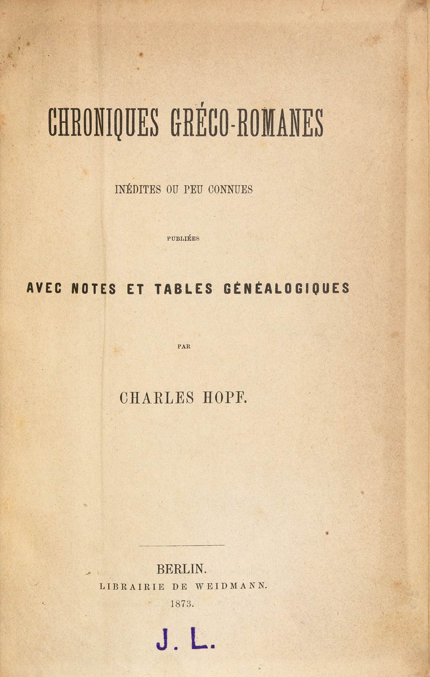 Chroniques Gréco-Romanes inédites ou peu connues.