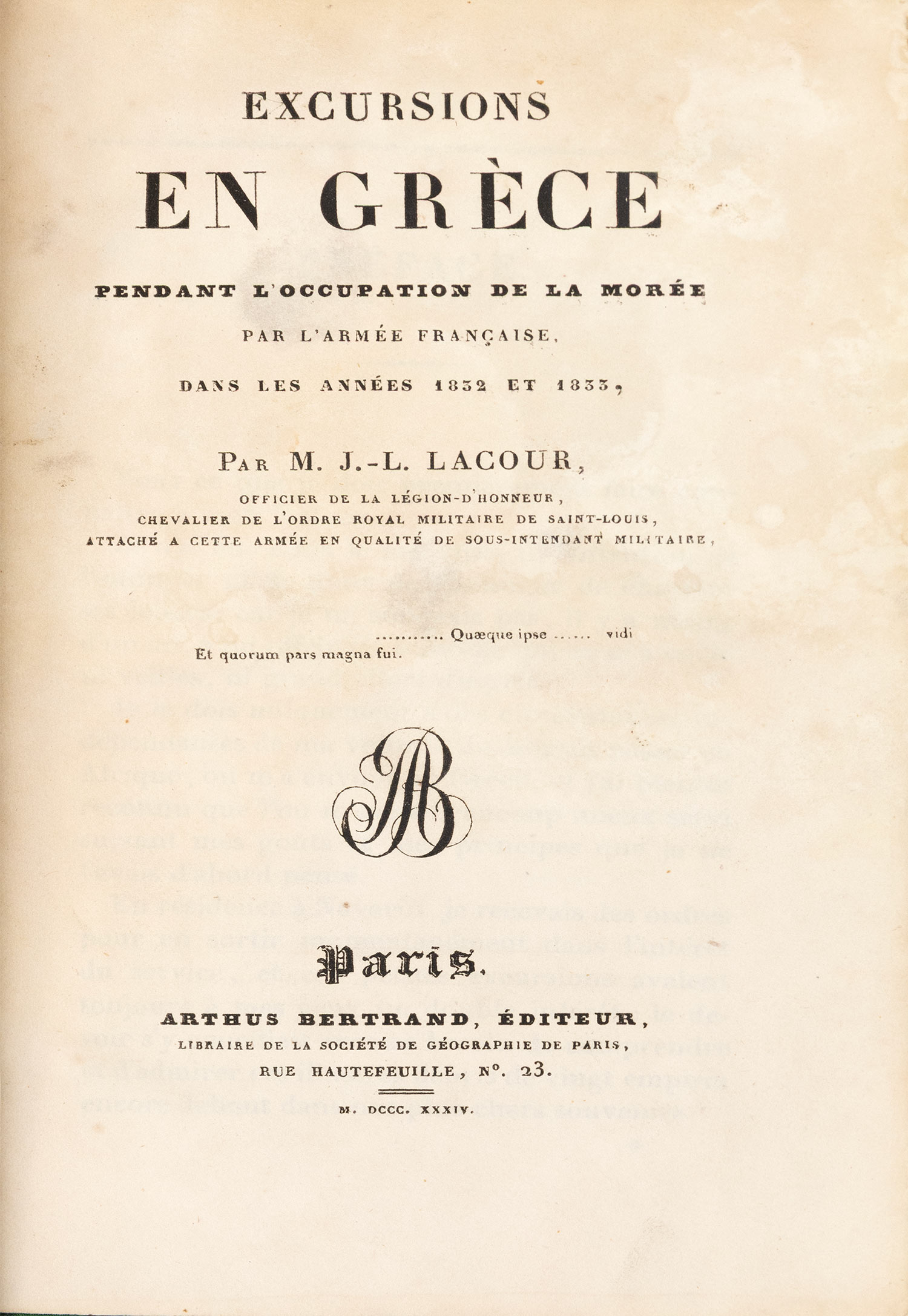 Excursions en Grèce pendant l'occupation de la Morée par l'Armée Française, dans les années 1832 et 1833.