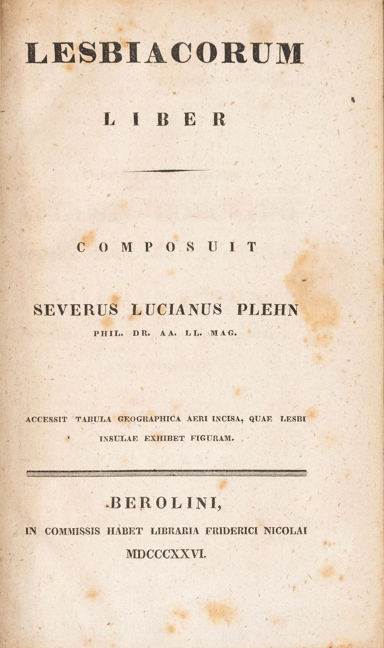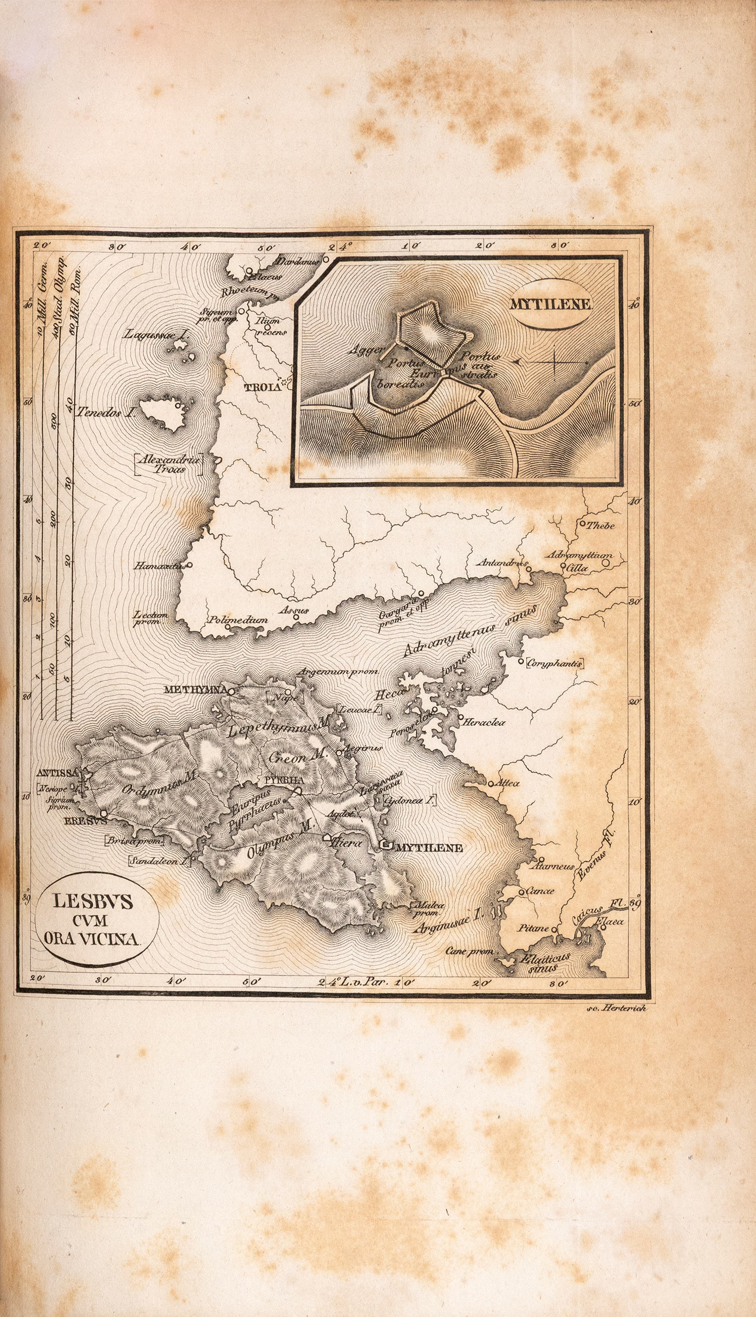 8o (204 x 125 mm.), 218 σ. (οξείδωση). Με έναν χαλκόγραφο χάρτη. Μεταγενέστερη δερμάτινη ράχη (λείπει μικρό τμήμα από τη βάση της ράχης, μικρές φθορές, μαρμαρογραφημένα τα ακρόφυλλα και οι ακμές, ex-libris Α. Δ. Χατζηδήμου). Brunet, IV, στ. 712.