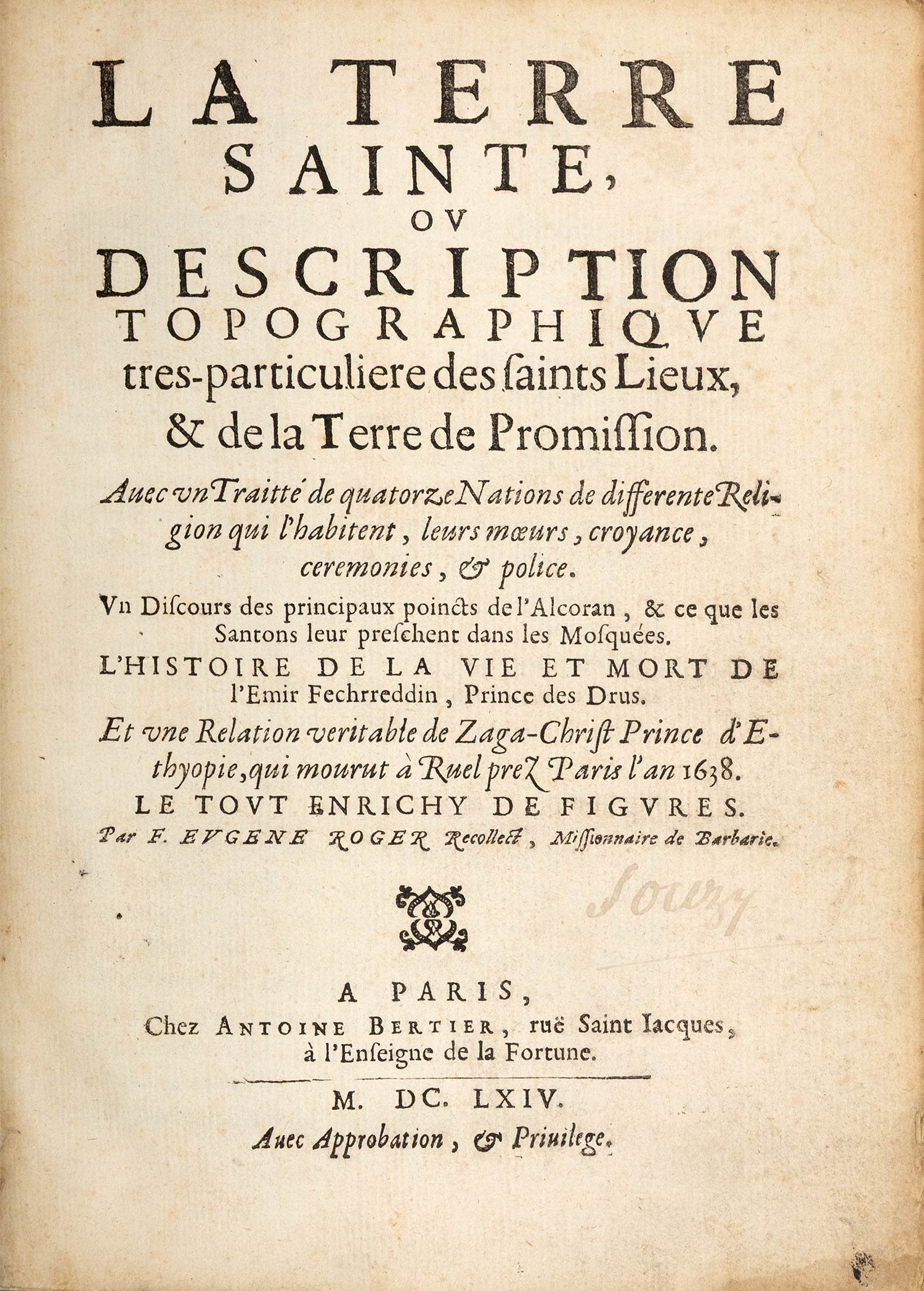 La Terre Sainte, ou Description topographique tres-particuliere des saints Lieux, & de la Terre de Promission.