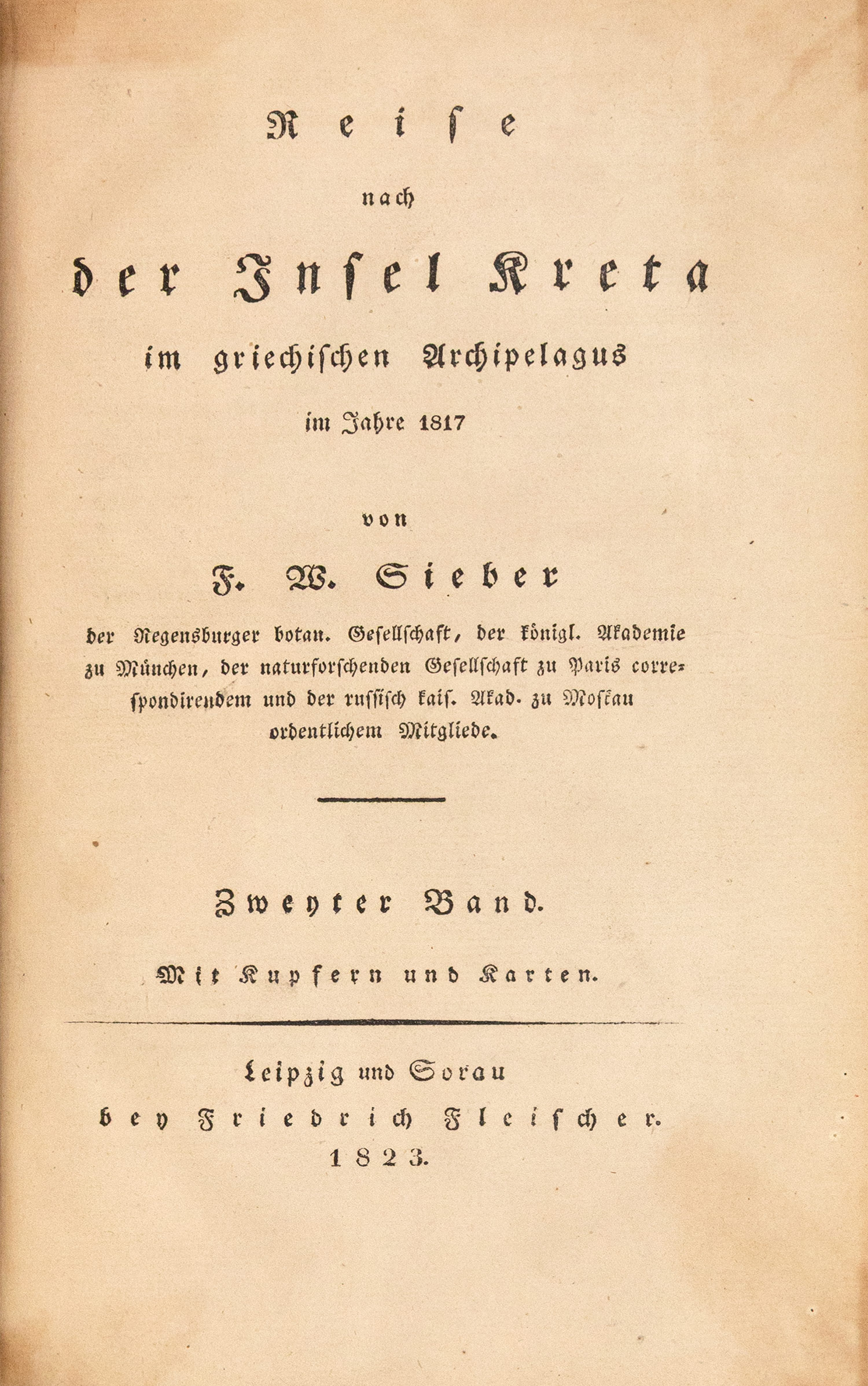 Reise nach der Insel Kreta im griechischen Archipelagus im Jahre 1817 (F. W. Sieber’s Reisen. Erste Lieferung. Reise nach der Insel Kreta in zwei Bänden).