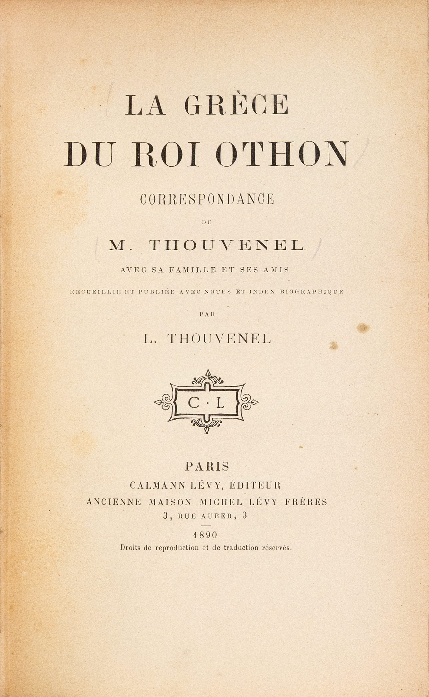 La Grèce du Roi Othon. Correspondance de M. Thouvenel avec sa famille et ses amis, recueillie et publiée avec notes et index biographique par L. Thouvenel.