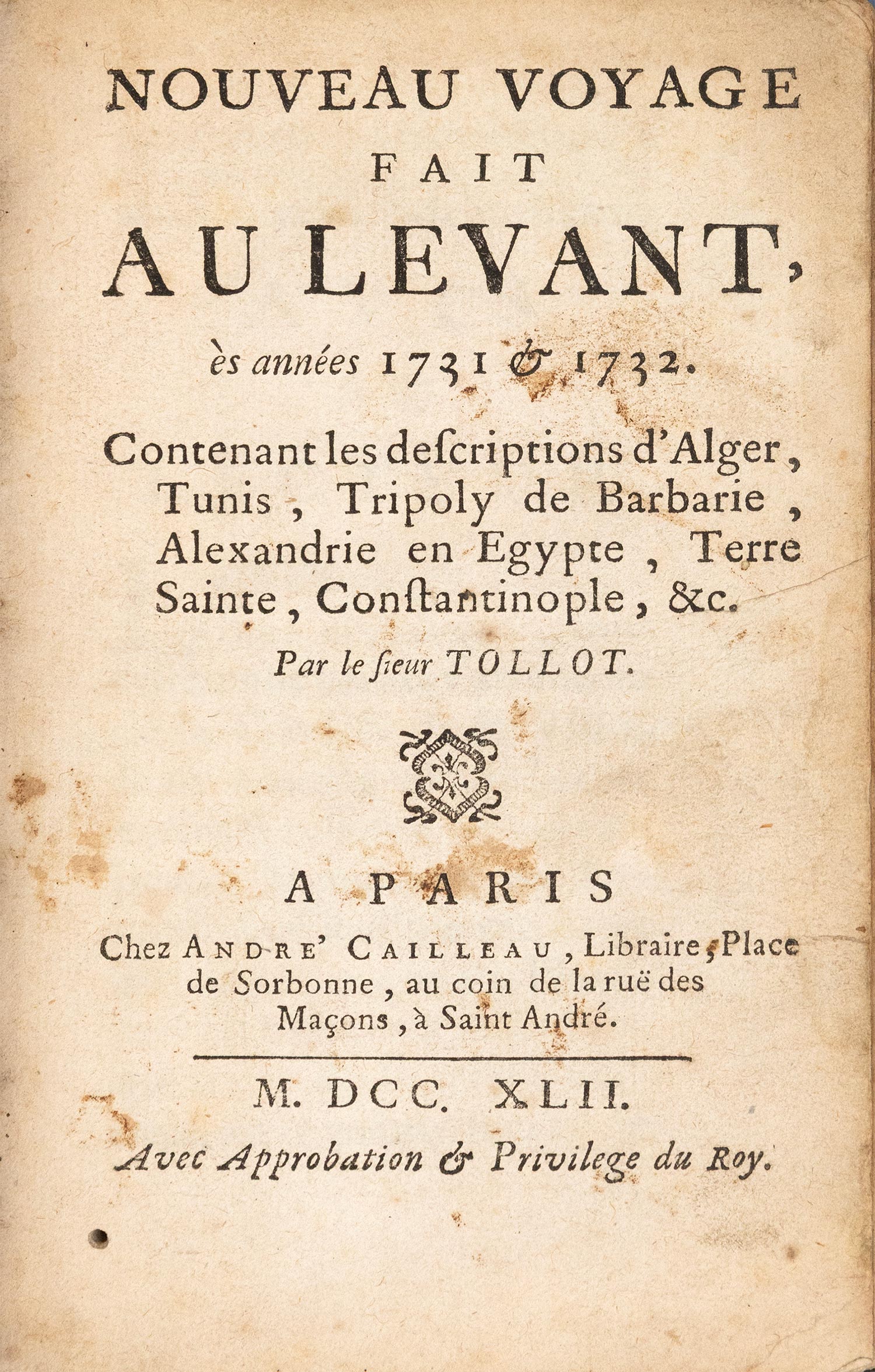 Nouveau voyage fait au Levant, ès années 1731 et 1732. Contenant les descriptions d'Alger, Tunis, Tripoly de Barbarie, Alexandrie d'Egypte, Terre Sainte, Constantinople, &c.
