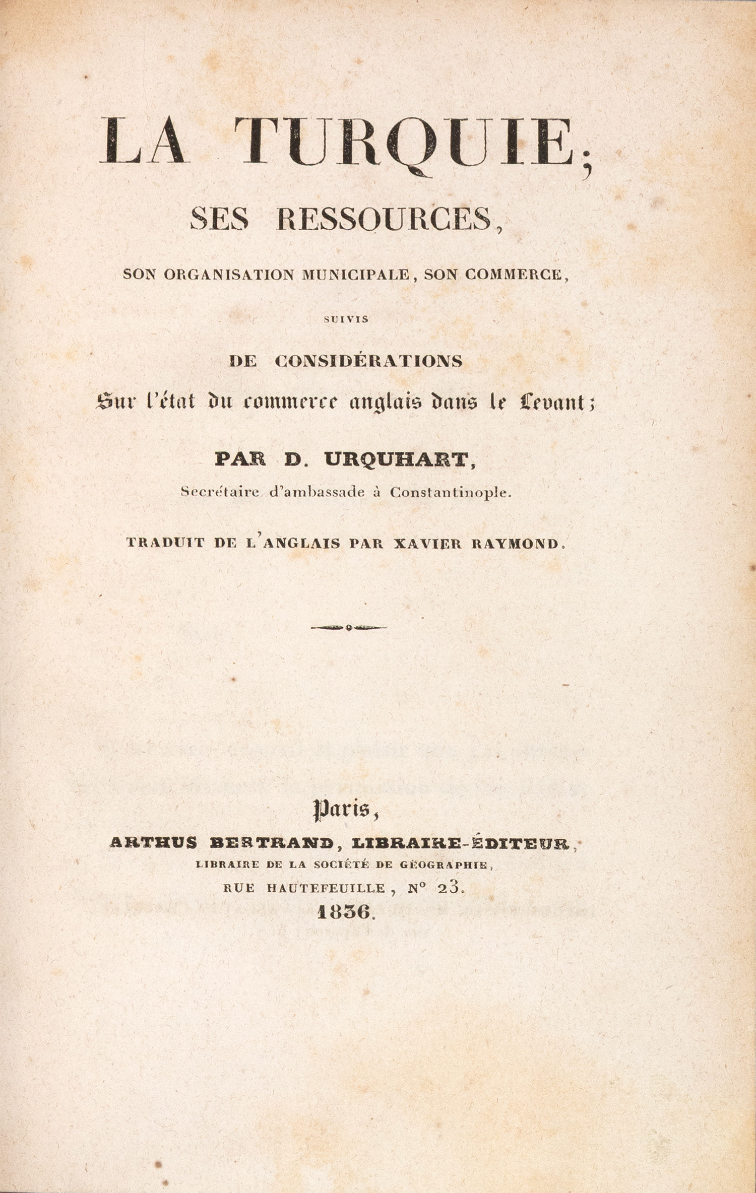 La Turquie; ses ressources, son organisation municipale, son commerce, suivis de considérations sur l'état du commerce anglais dans le Levant.