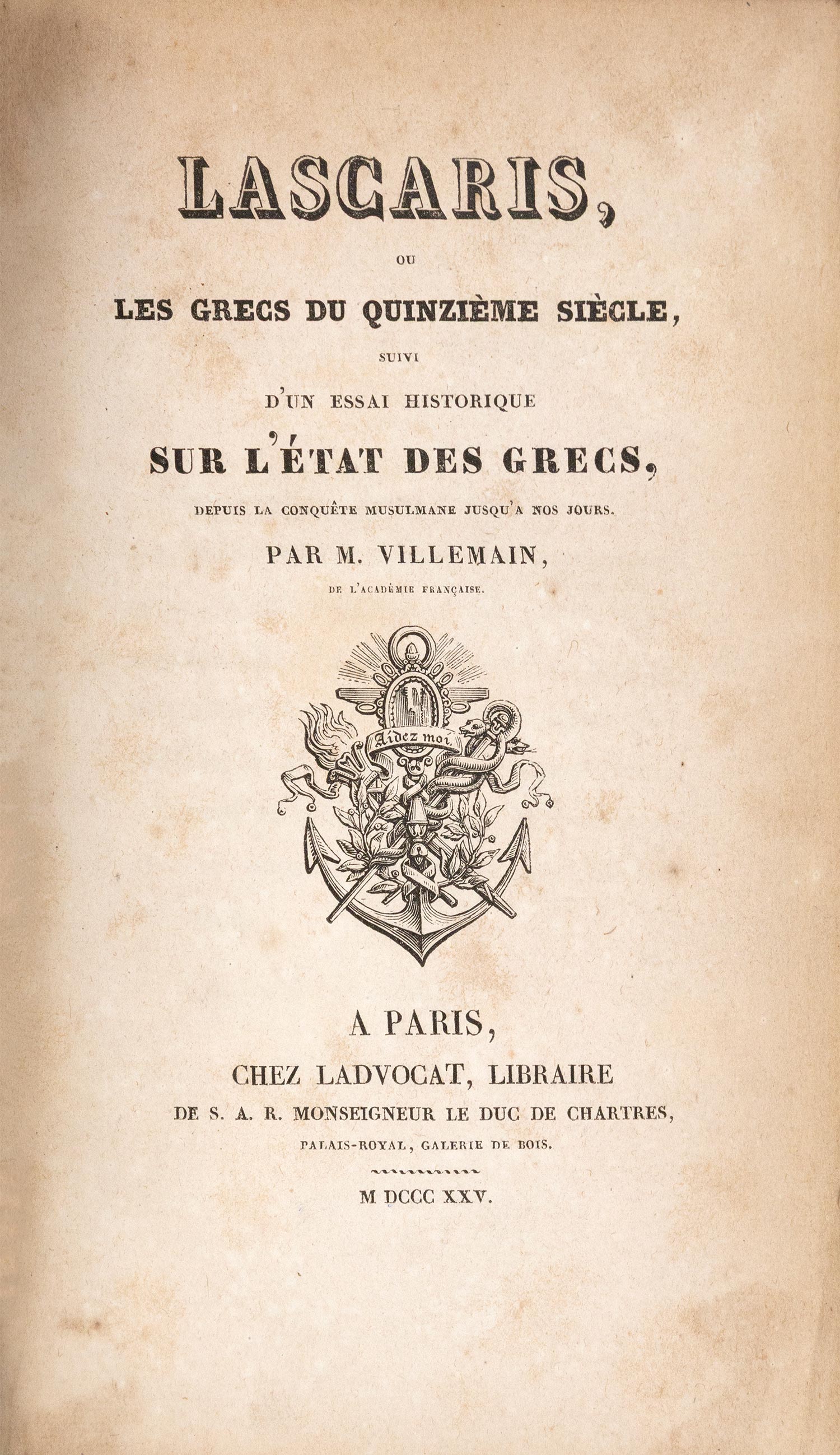 Lascaris, ou Les Grecs du quinzième siècle, suivi d'un essai historique sur l'état des Grecs, depuis la conquête musulmane jusqu'a nos jours.