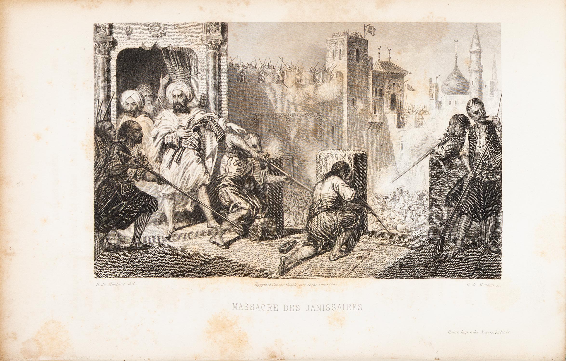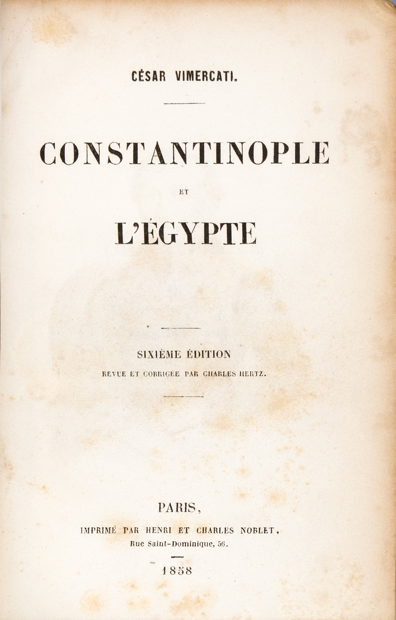 Έκτη γαλλική έκδοση, 8o (210 x 134 mm.), 374 σ. (σε λάθος θέση δεμένη η προμετωπίδα). Χαλκόγραφη προμετωπίδα, χαλκόγραφο πορτραίτο του συγγραφέα σε θέση προμετωπίδας και ένας χαλκόγραφος πίνακας. Δερμάτινη ράχη της εποχής της έκδοσης (μικρές φθορές, μαρμαρογραφημένα τα ακρόφυλλα, ex-libris Α. Δ. Χατζηδήμου). Contominas 769, πρβ. Blackmer 1739 (η δεύτερη έκδοση), Atabey 1296 (η έβδομη), Weber, I, 451 & 540 (η πρώτη και τρίτη).
