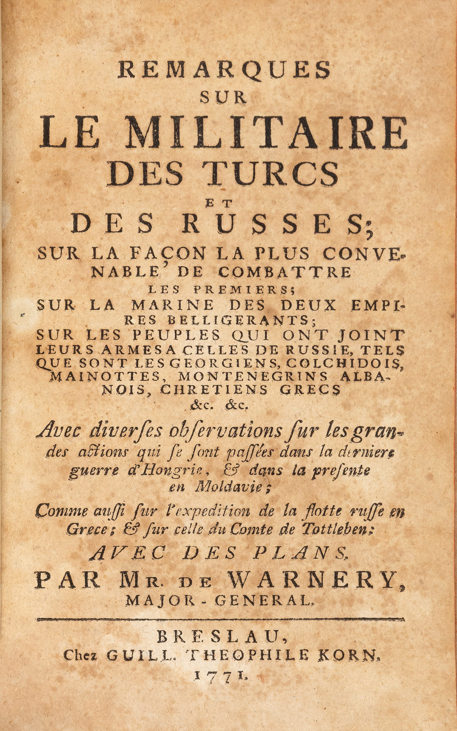 Remarques sur le militaire des Turcs et des Russes.