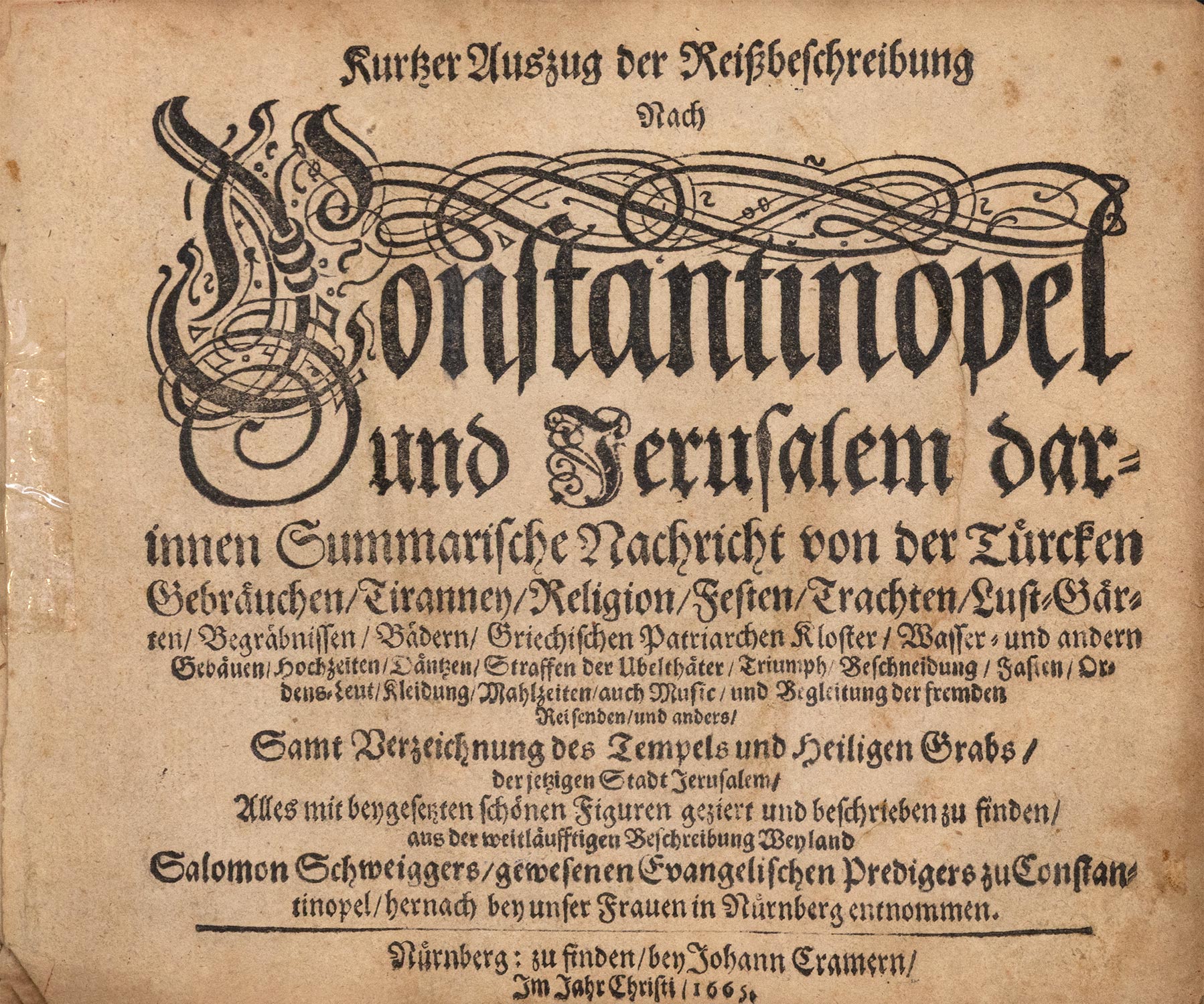 Kurtzer Auszug der Reissbeschreibung nach Constantinopel und Jerusalem darinnen summarische Nachricht von der Türcken.