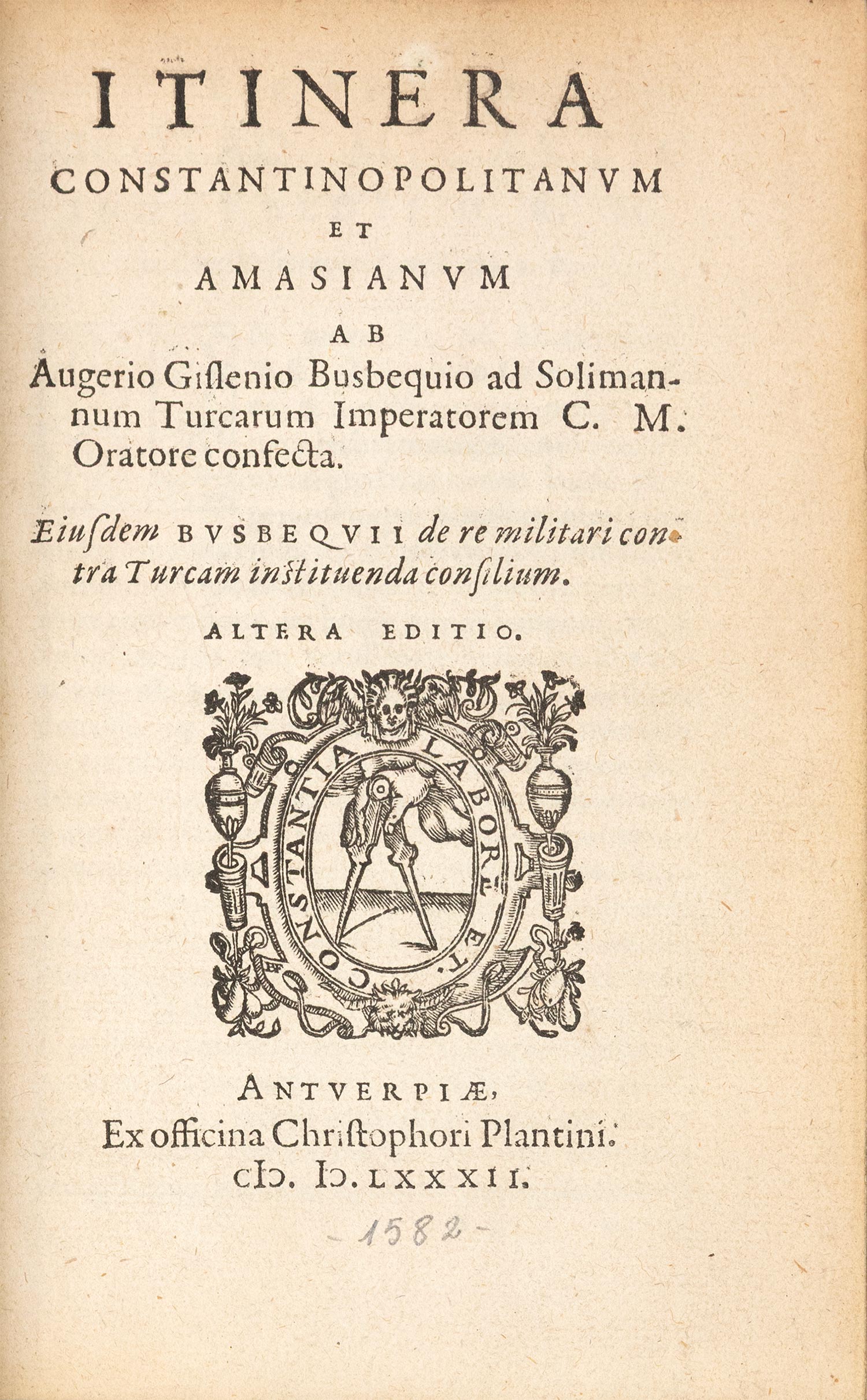 Itinera Constantinopolitanum et Amasianum ab Augerio Gislenio Busbequio ad Solimannum Turcarum Imperatorem C. M. Oratore confecta. Eiusdem Busbequii de re militari contra Turcam instituenda consilium.