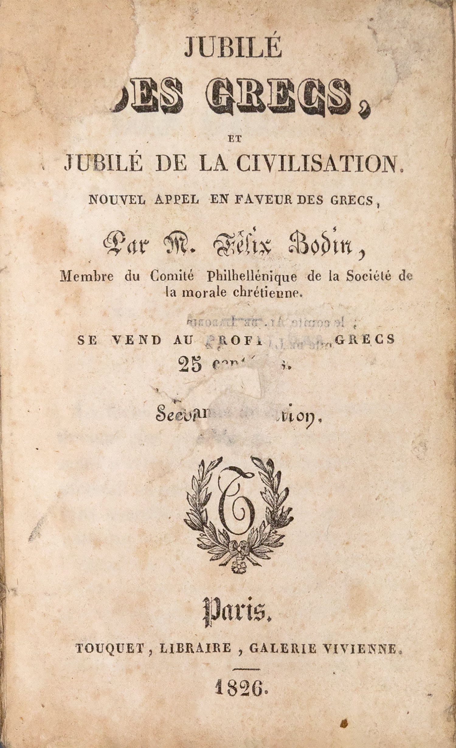 Jubilé des Grecs, et jubilé de la civilisation. Nouvel appel en faveur des Grecs, seconde édition.