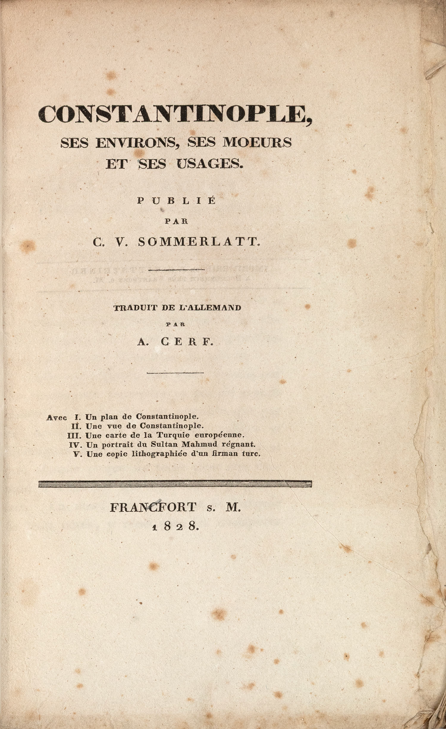 Constantinople, ses environs, ses moeurs et ses usages. Publié par C. V. Sommerlatt. Traduit de l'allemand par A. Cerf.