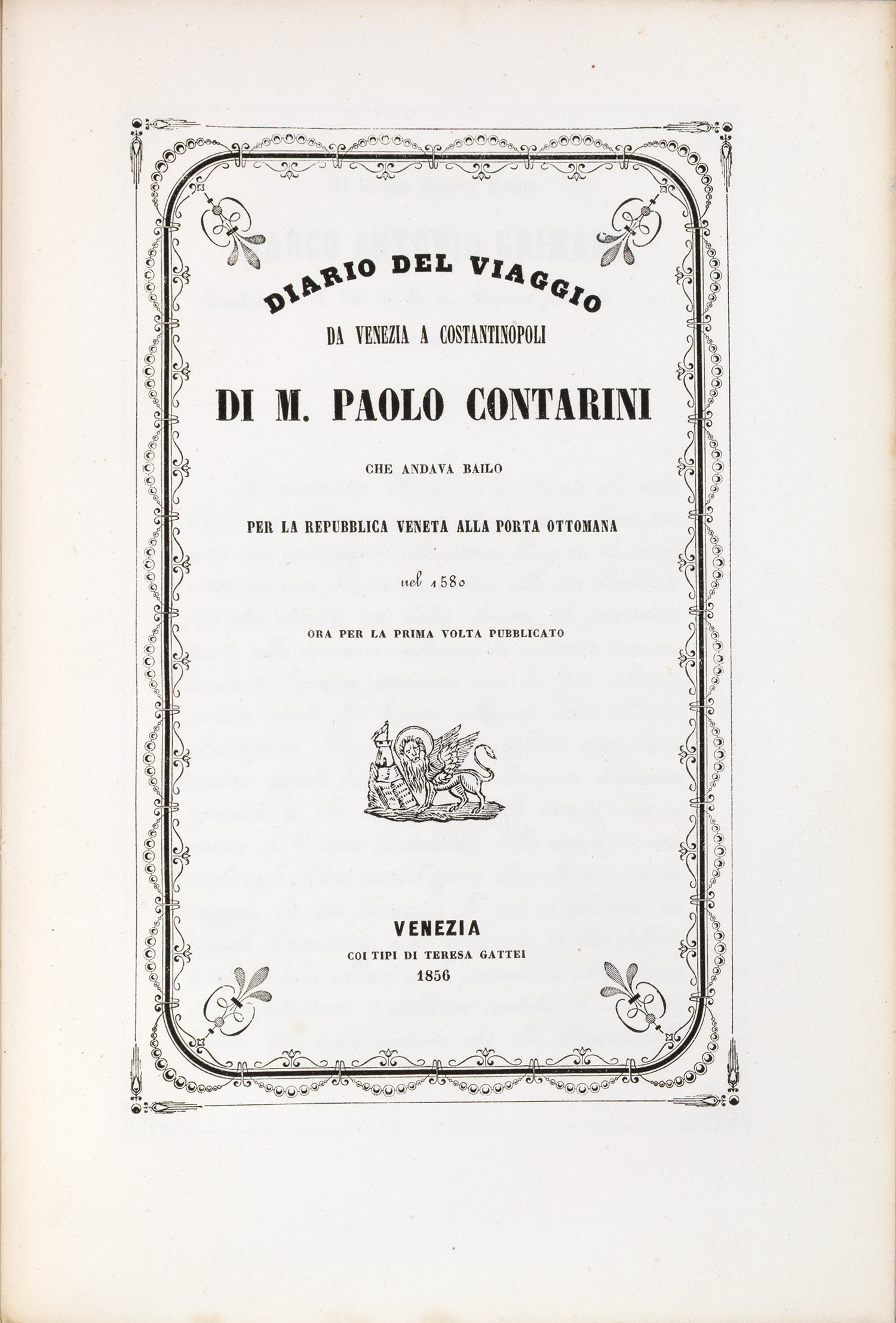 Diario del viaggio da Venezia a Constantinopoli di M. Paolo Contarini che andava bailo per la Repubblica veneta alla Porta ottomana nel 1580 ora per la prima volta pubblicato.