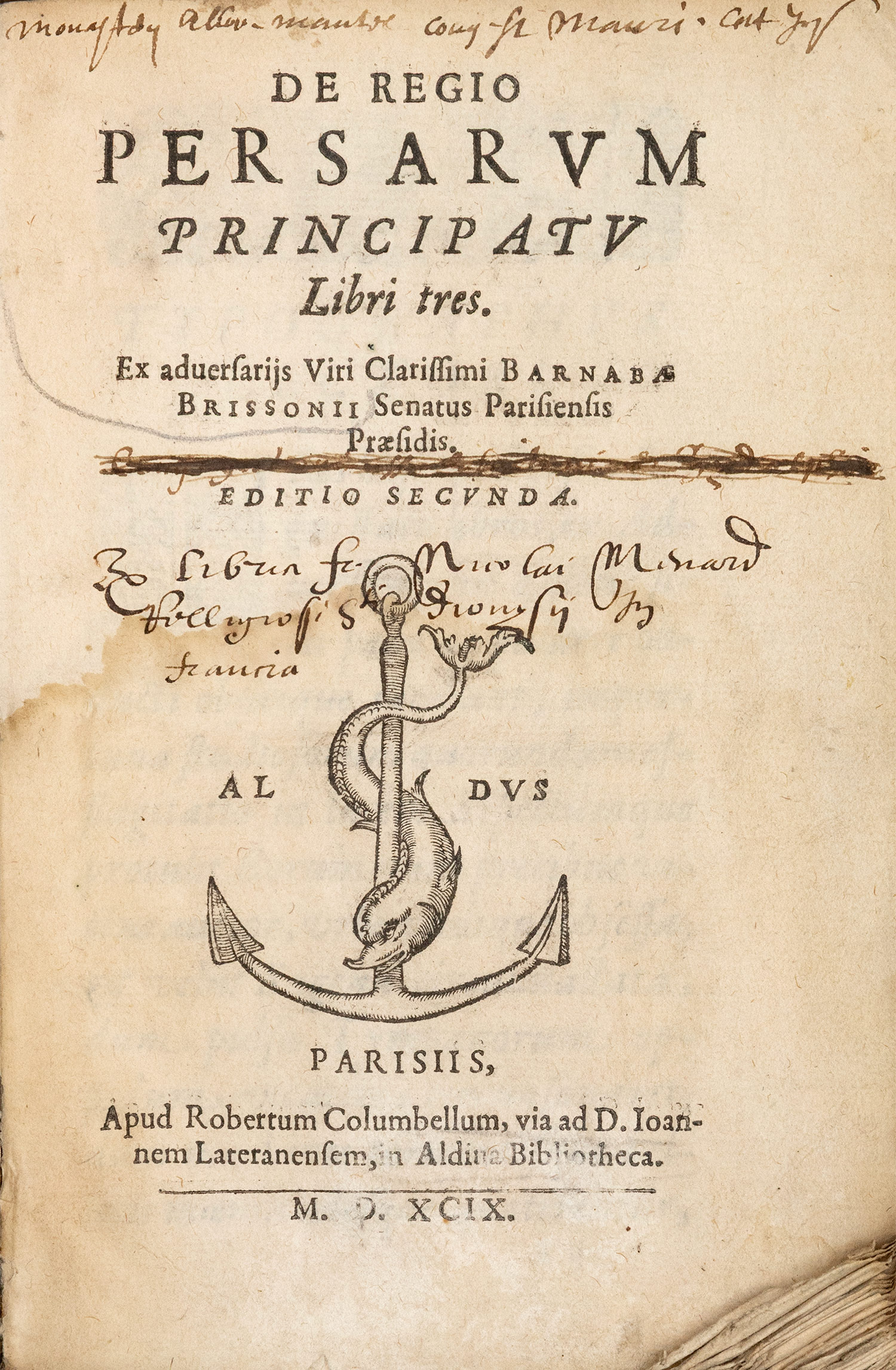 Δεύτερη έκδοση, μικρό 8ο (167 x 110 mm.), 16 + 488 σ. (λεκές από νερό στο κάτω μισό των φύλλων, μικρές τρύπες από έντομο στο εσωτερικό περιθώριο αρκετών φύλλων). Ξυλόγραφο τυπογραφικό σήμα του Άλδου Μανούτιου και κτητορική σημείωση στον τίτλο. Εύκαμπτη περγαμηνή της εποχής της έκδοσης (λερωμένη, λείπει μικρό τμήμα από την κάτω εξωτερική γωνία του πάνω καλύμματος, ex-libris Α. Δ. Χατζηδήμου). Renouard (Alde) σ. 497-8.