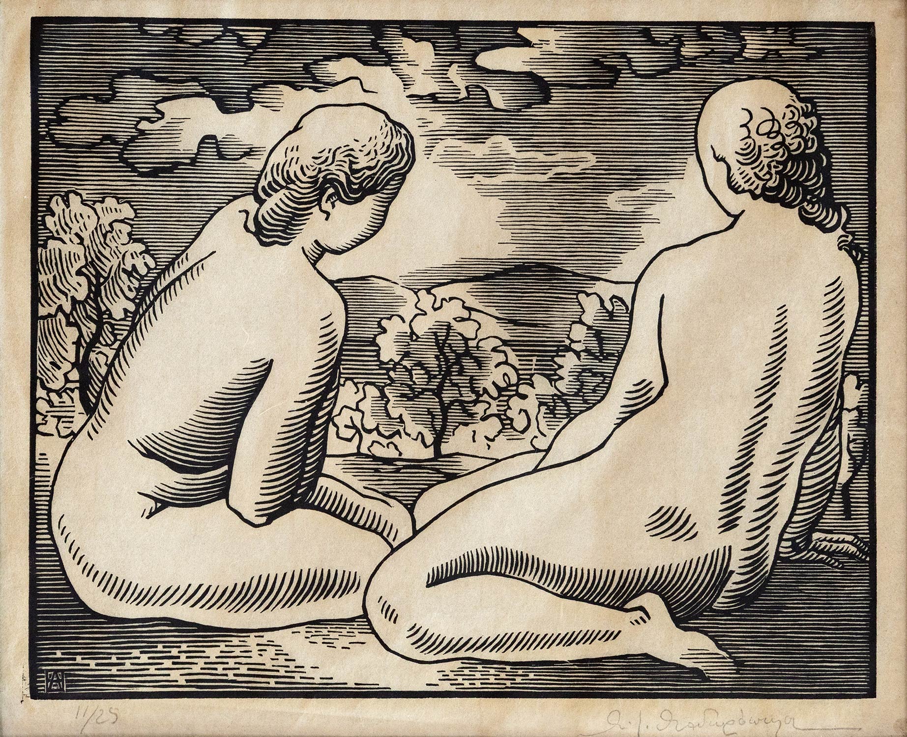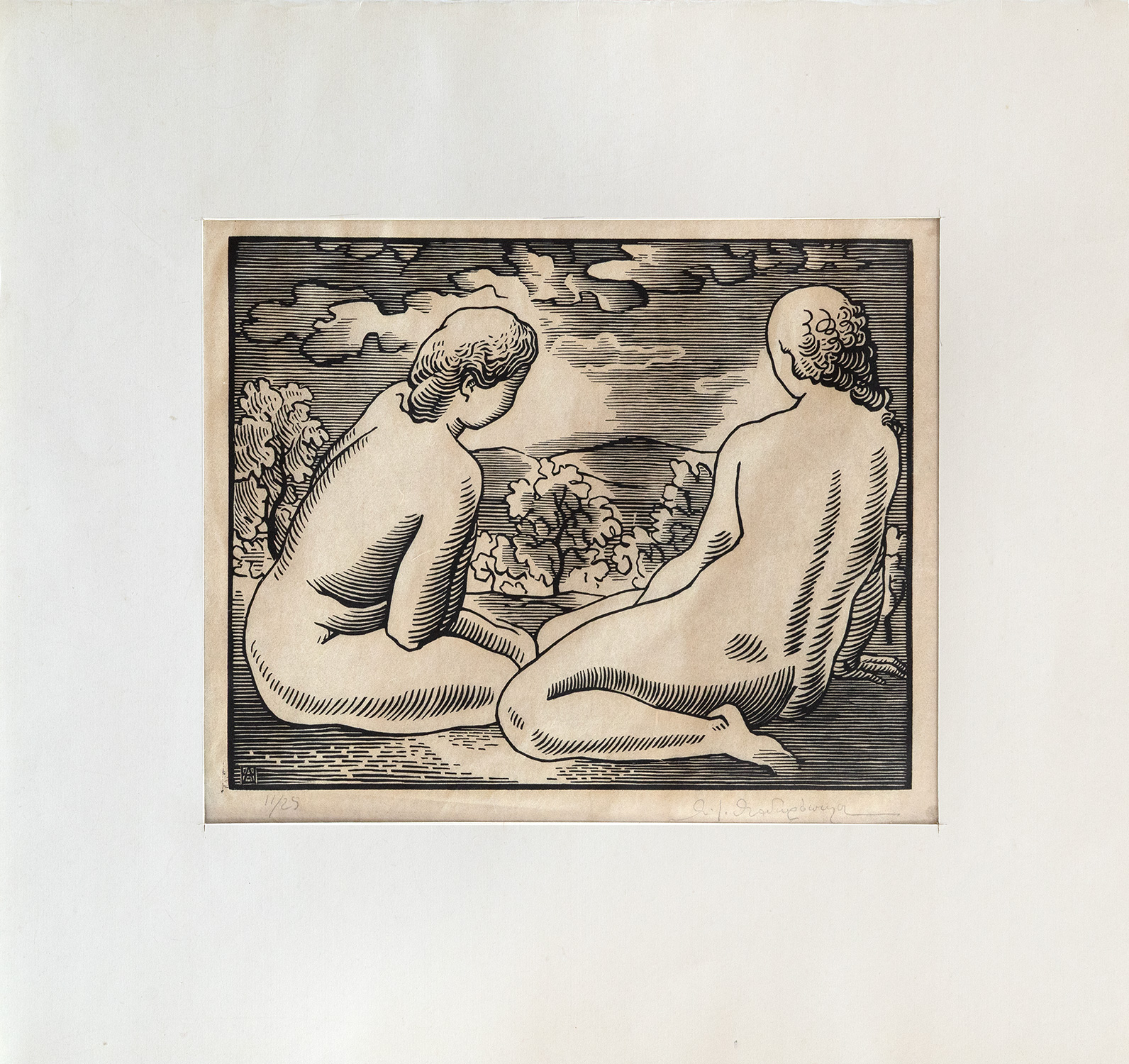 Ξυλογραφία σε όρθιο ξύλο, 254 x 319 mm. Έκδοση σε 25 αντίτυπα, αρίθμηση και υπογραφή στο κάτω περιθώριο με μολύβι, υπογραφή με μονόγραμμα στην πλάκα. Δεληβορριάς Ξ177. Σε πασπαρτού.