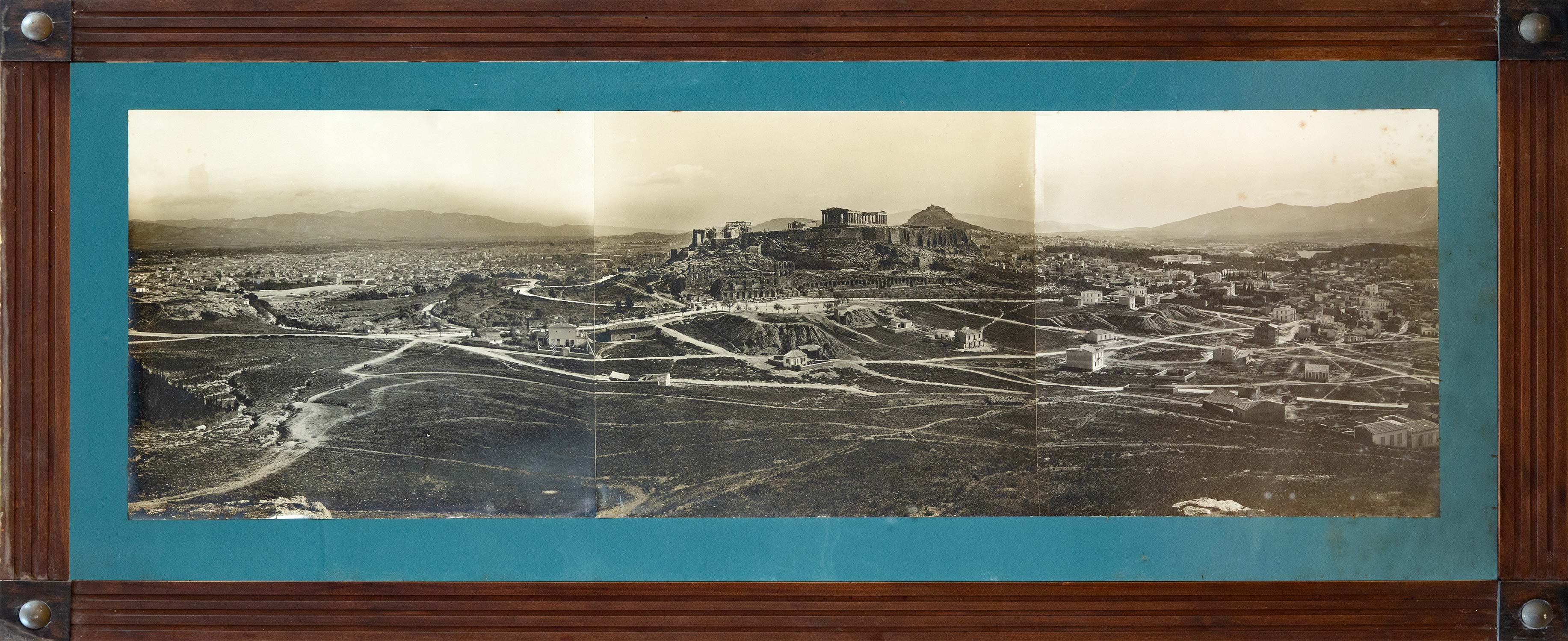 Σε 3 μέρη, τυπώματα κολλοδίου/ζελατίνας επικολλημένα σε χαρτόνι, ολικές διαστάσεις: 350 x 1045 mm. (οξειδώσεις στη δεξιά πλευρά του τρίτου μέρους). Σε κορνίζα.