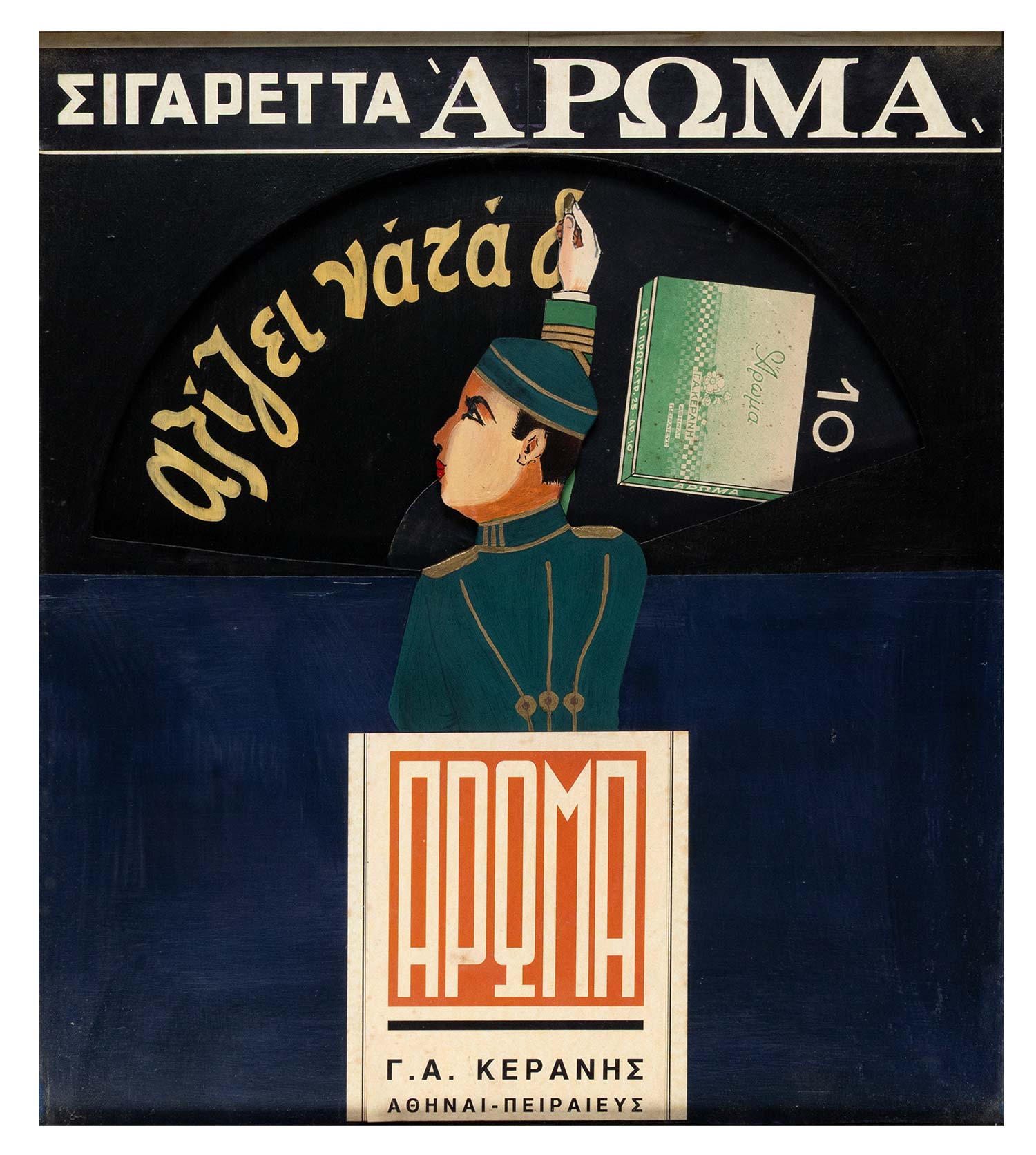 Διαφημιστική κατασκευή γιά τά τσιγάρα «Ἄρωμα» τῆς καπνοβιομηχανίας Γ. Α. Κεράνης.