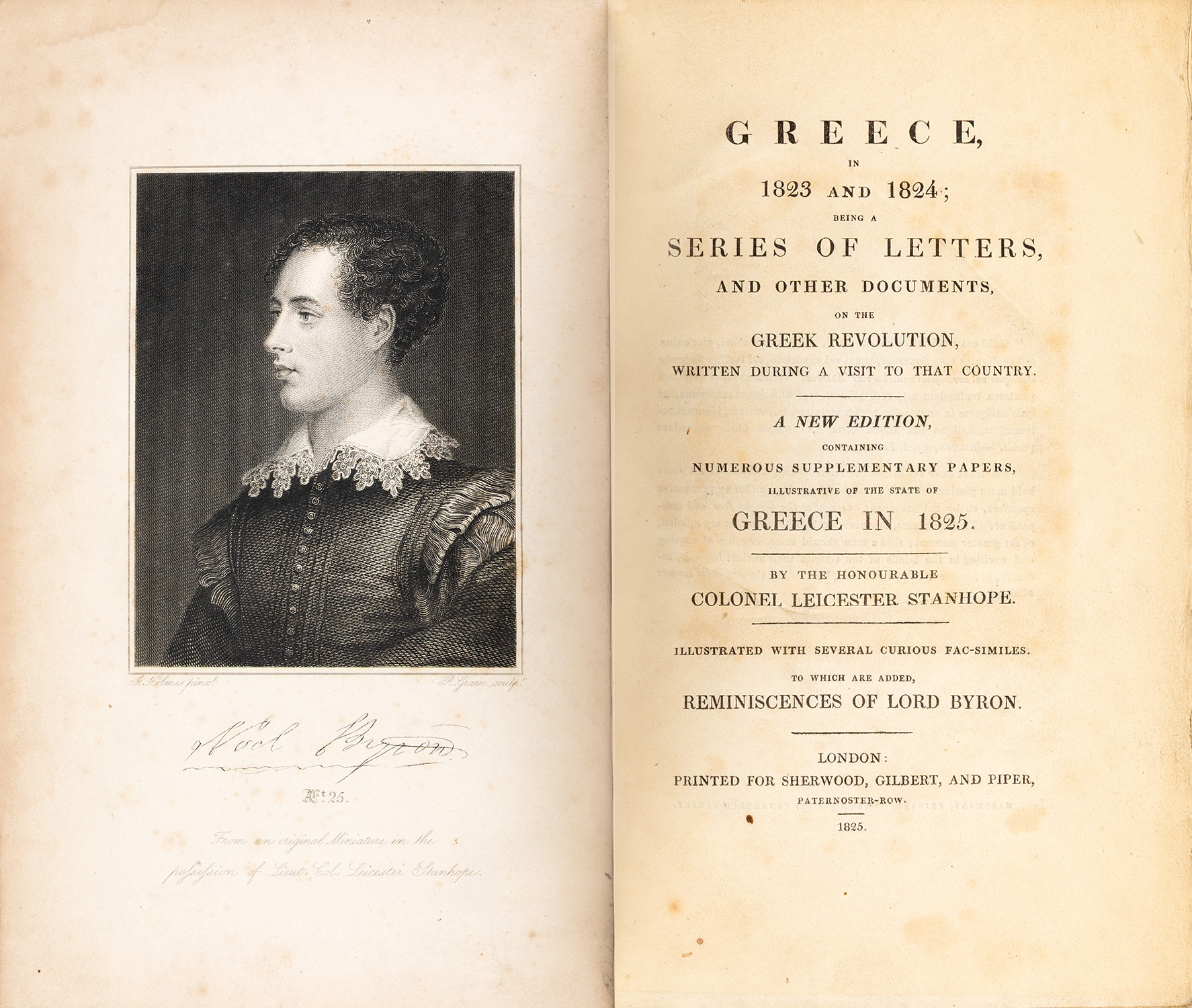 Greece in 1823 and 1824, being a series of letters and other documents on the Greek Revolution, written during a visit to that country. A new edition, containing numerous supplementary papers, illustrative of the state of Greece in 1825, illustrated with several curius facsimiles, to which are added, reminiscences of Lord Byron.