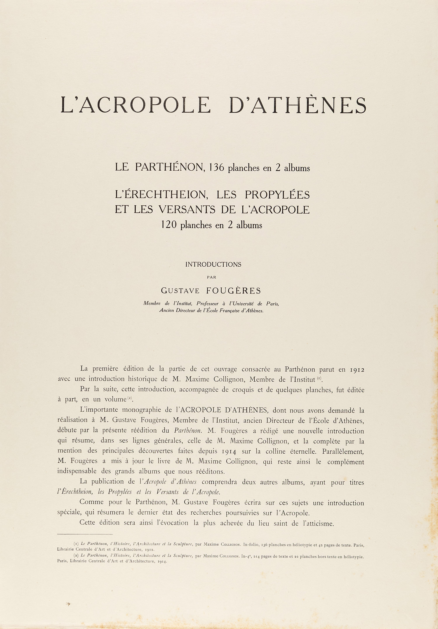 L’Acropole d’Athènes. Le Parthenon. Introduction par Gustave Fougères, [photographies de Fred. Boissonnas et W. A. Mansell & Co].