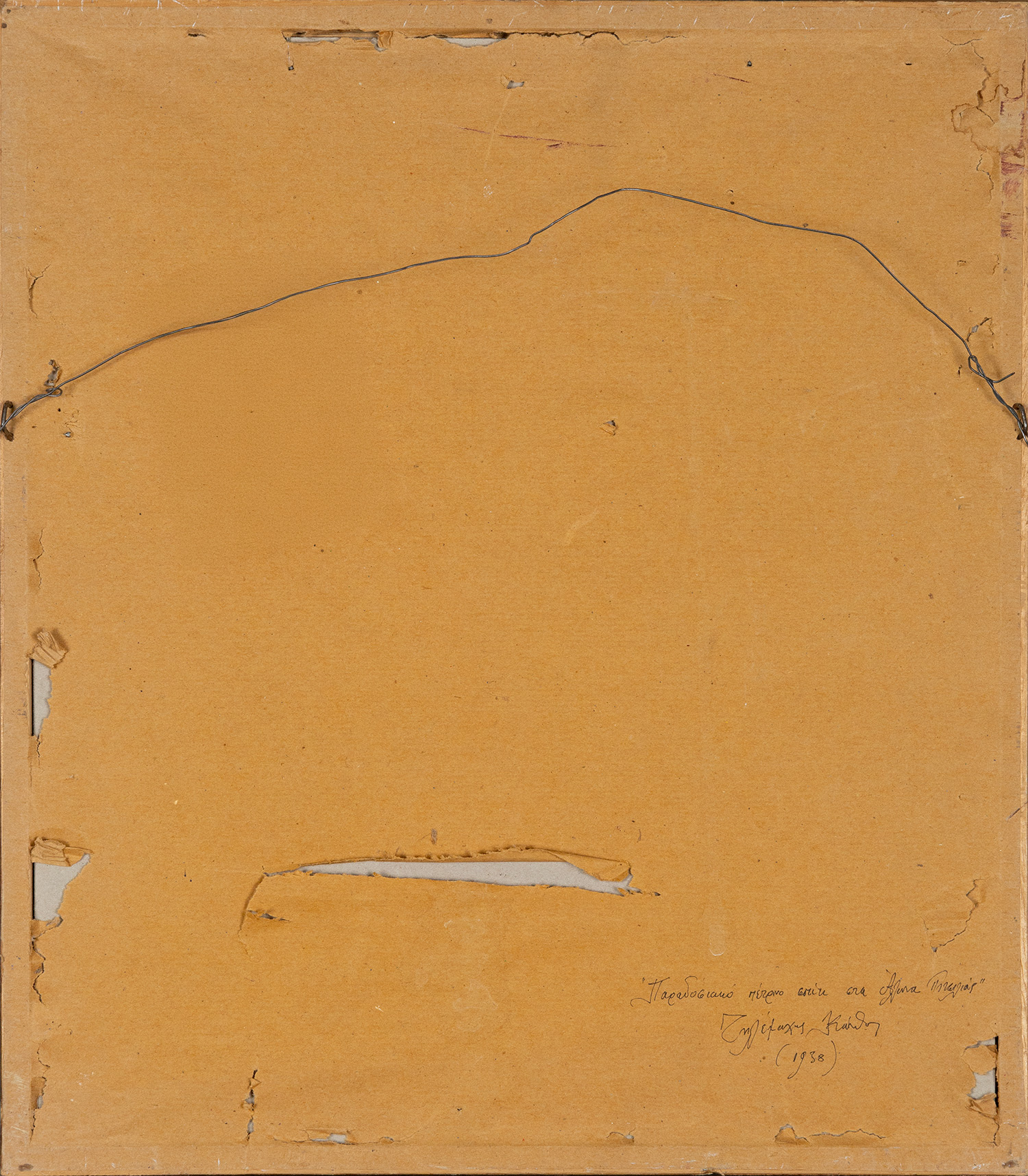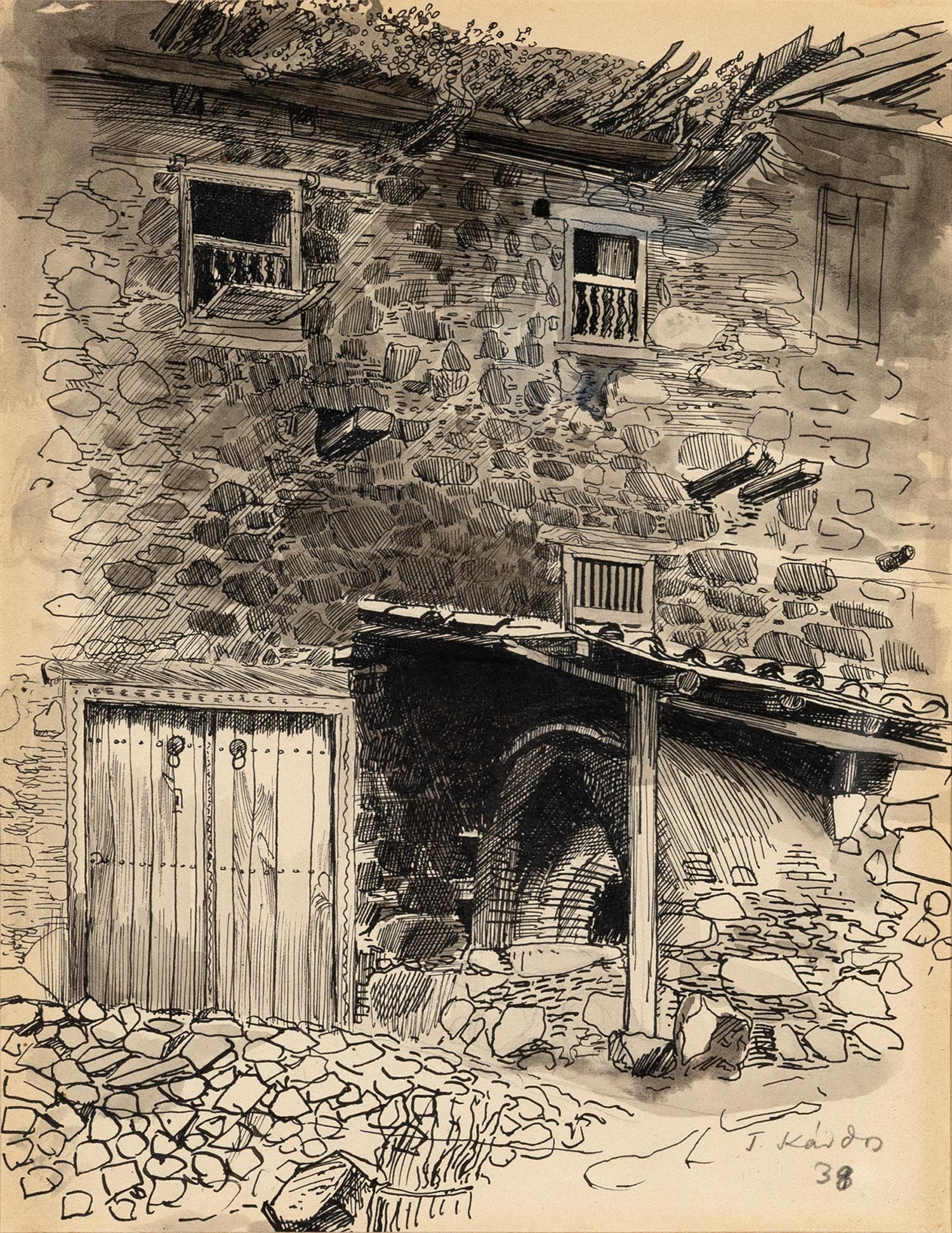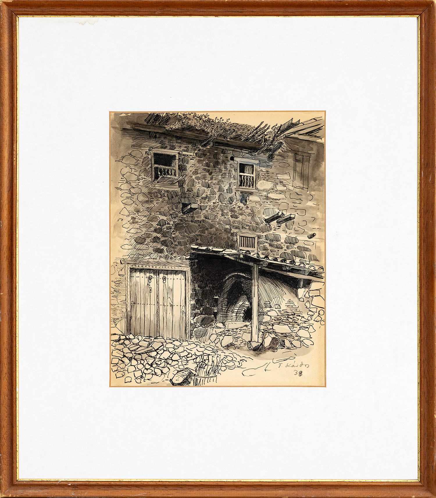 Μελάνι και υδατογραφία σε χαρτί, 220 x 170 mm. Υπογεγραμμένο και χρονολογημένο κάτω δεξιά: «Τ. Κάνθος / 38». Σε κορνίζα.