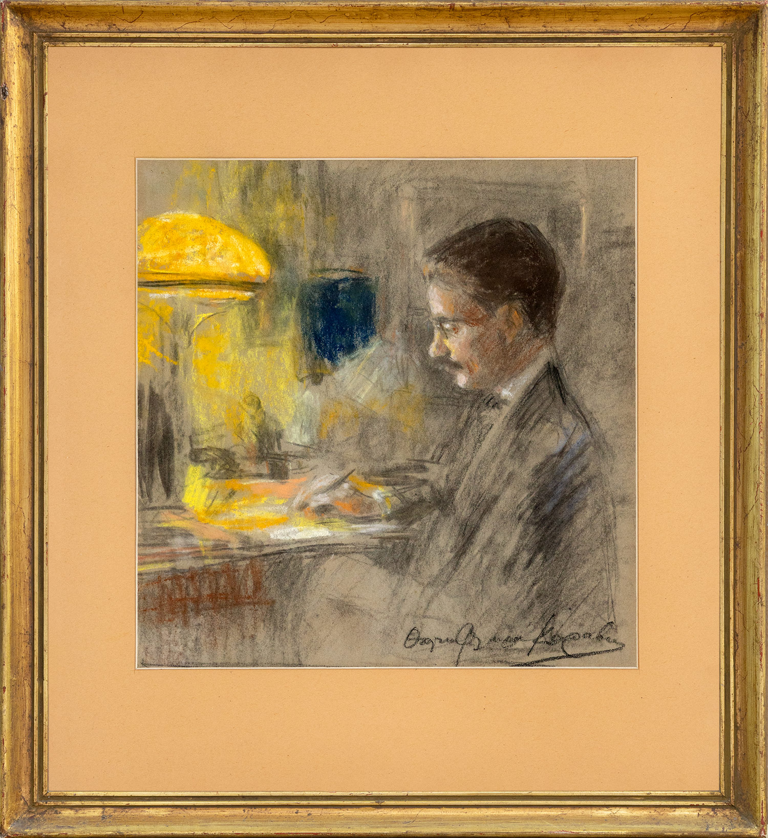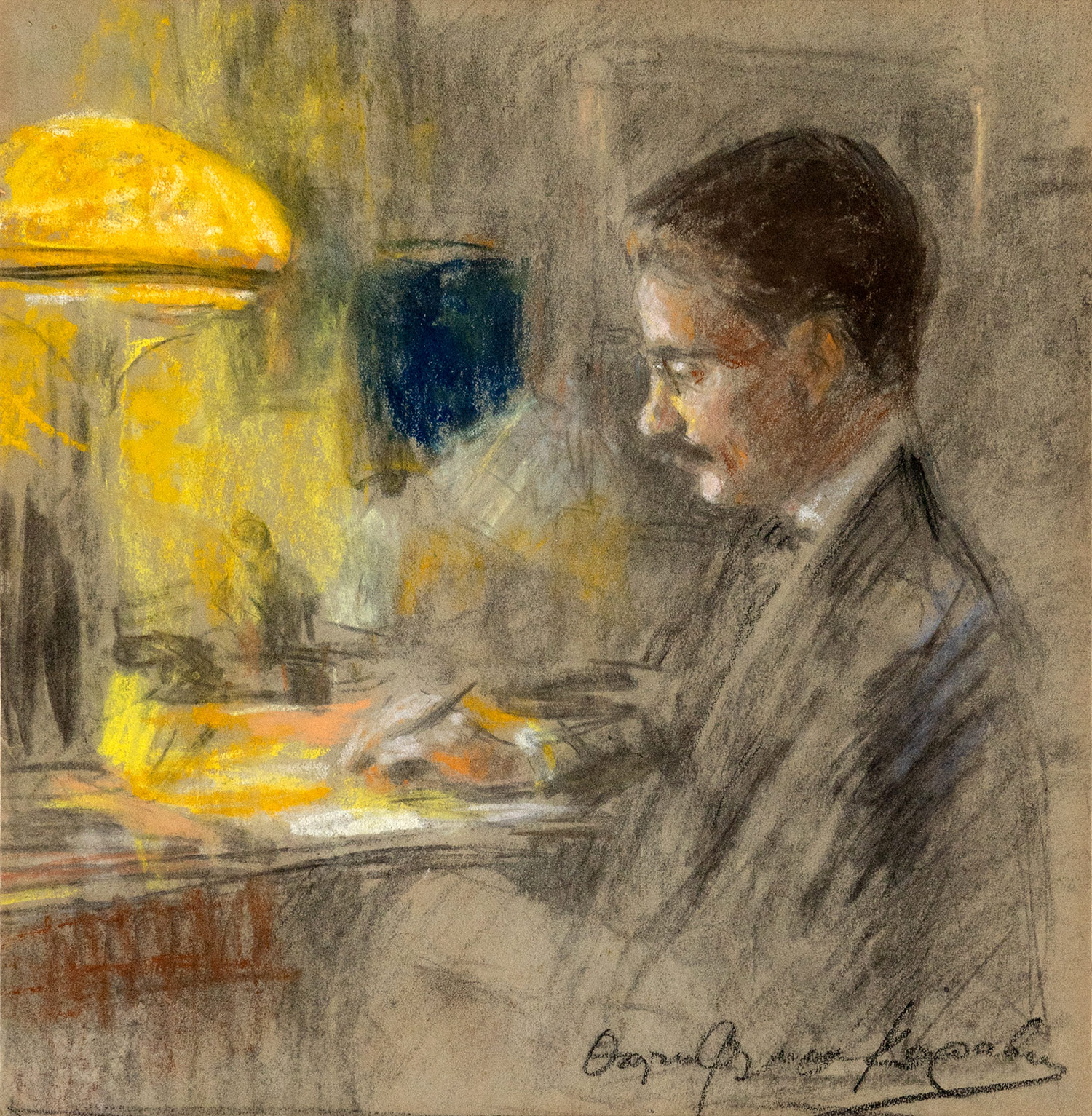 Κραγιόνια και κάρβουνο σε χαρτί, 265 x 260 mm. Υπογεγραμμένο κάτω δεξιά: «Θάλεια Φλωρᾶ-Καραβία». Σε κορνίζα. • Βλ. Τσούργιαννη, Δέσποινα Μ., Θάλεια Φλωρά-Καραβία, Αθήνα 2018 (αρ. 10, εικονίζεται στη σ. 54).