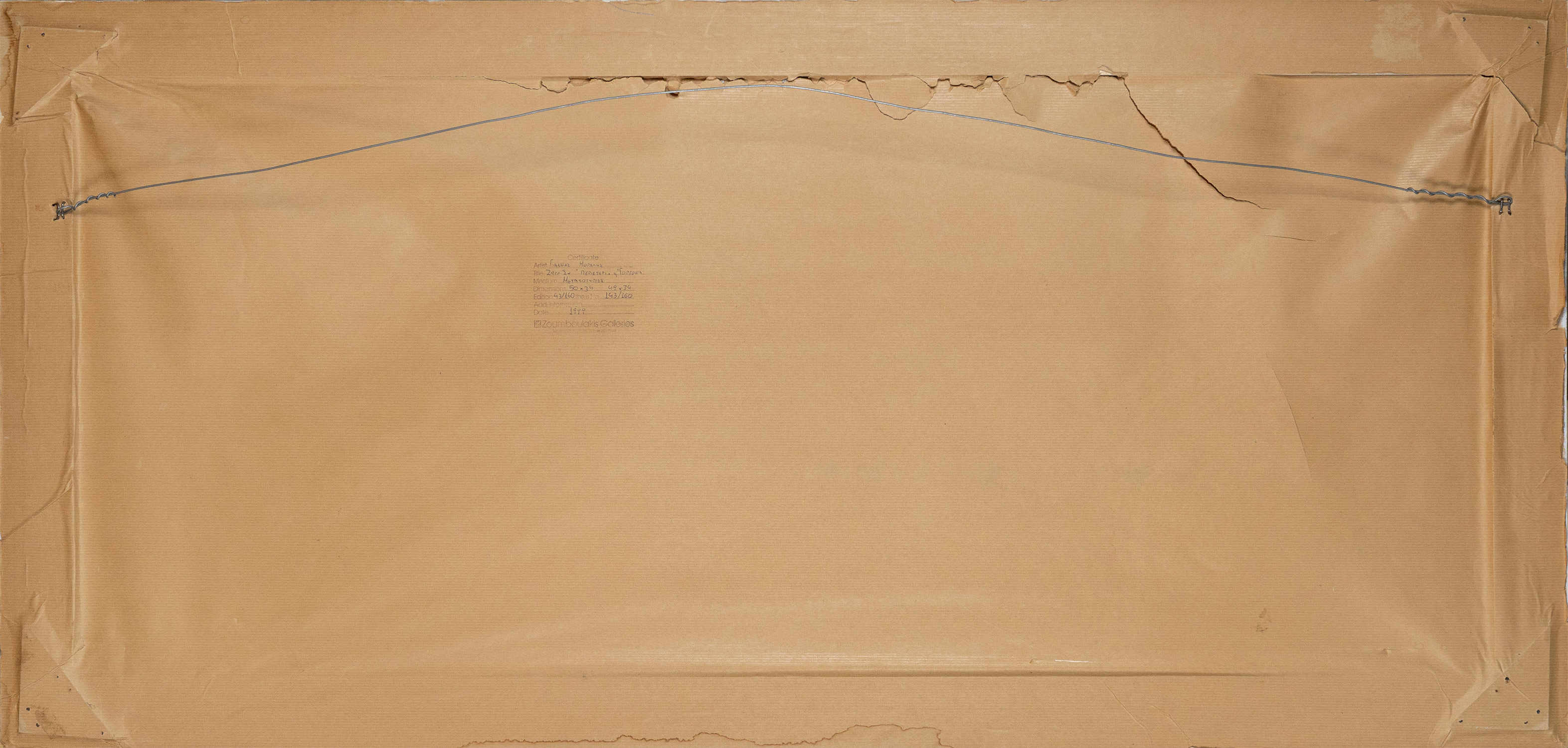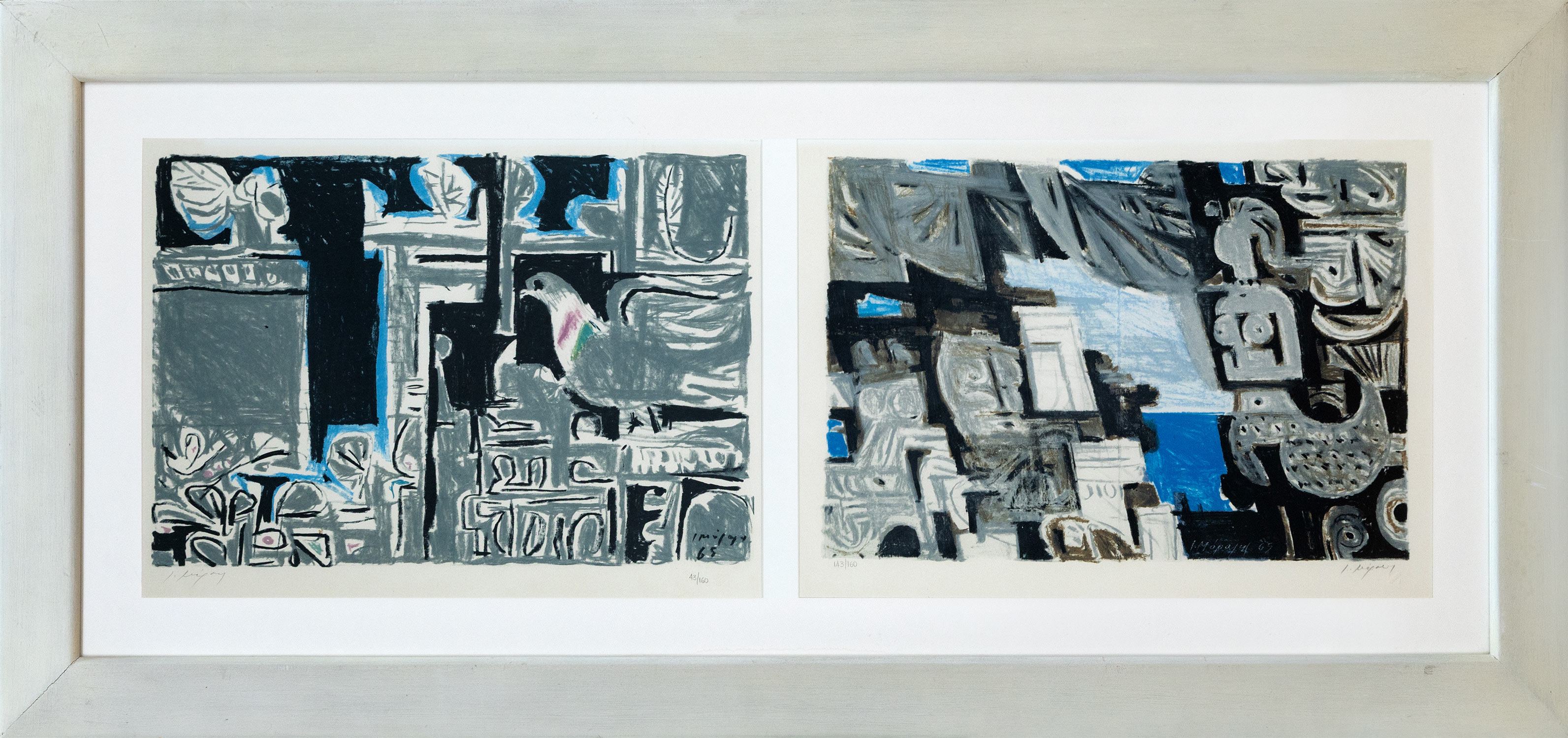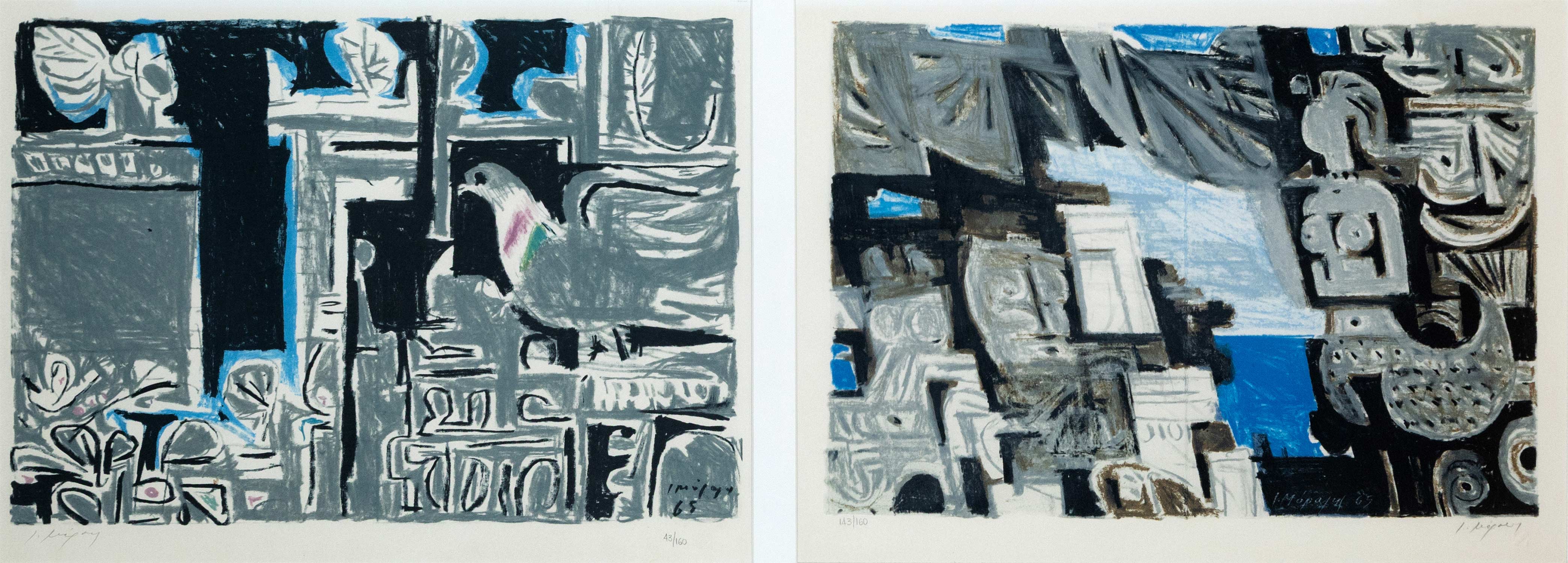 Μεταξοτυπίες, 340 x 503 και 336 x 492 mm. Έκδοση σε 160 αντίτυπα, υπογραφή και αρίθμηση στο κάτω περιθώριο με μολύβι (έκαστη). Σε κοινή κορνίζα. • Από την εικονογράφηση της συλλογής Ποιήματα του Γ. Σεφέρη (1965).