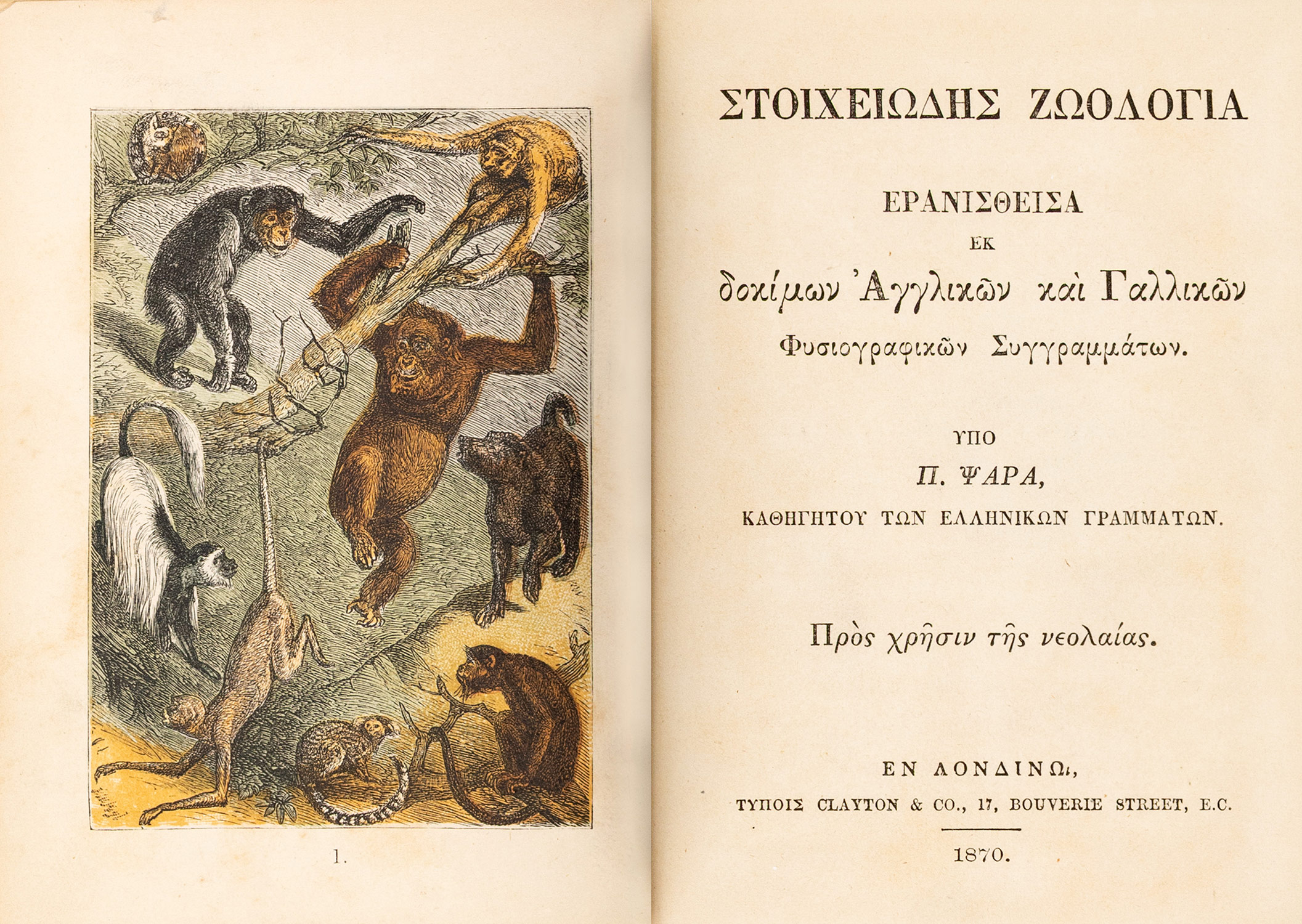 Στοιχειώδης ζωολογία ἐρανισθεῖσα ἐκ δοκίμων ἀγγλικῶν καί γαλλικῶν φυσιογραφικῶν συγγραμμάτων, πρός χρῆσιν τῆς νεολαίας.