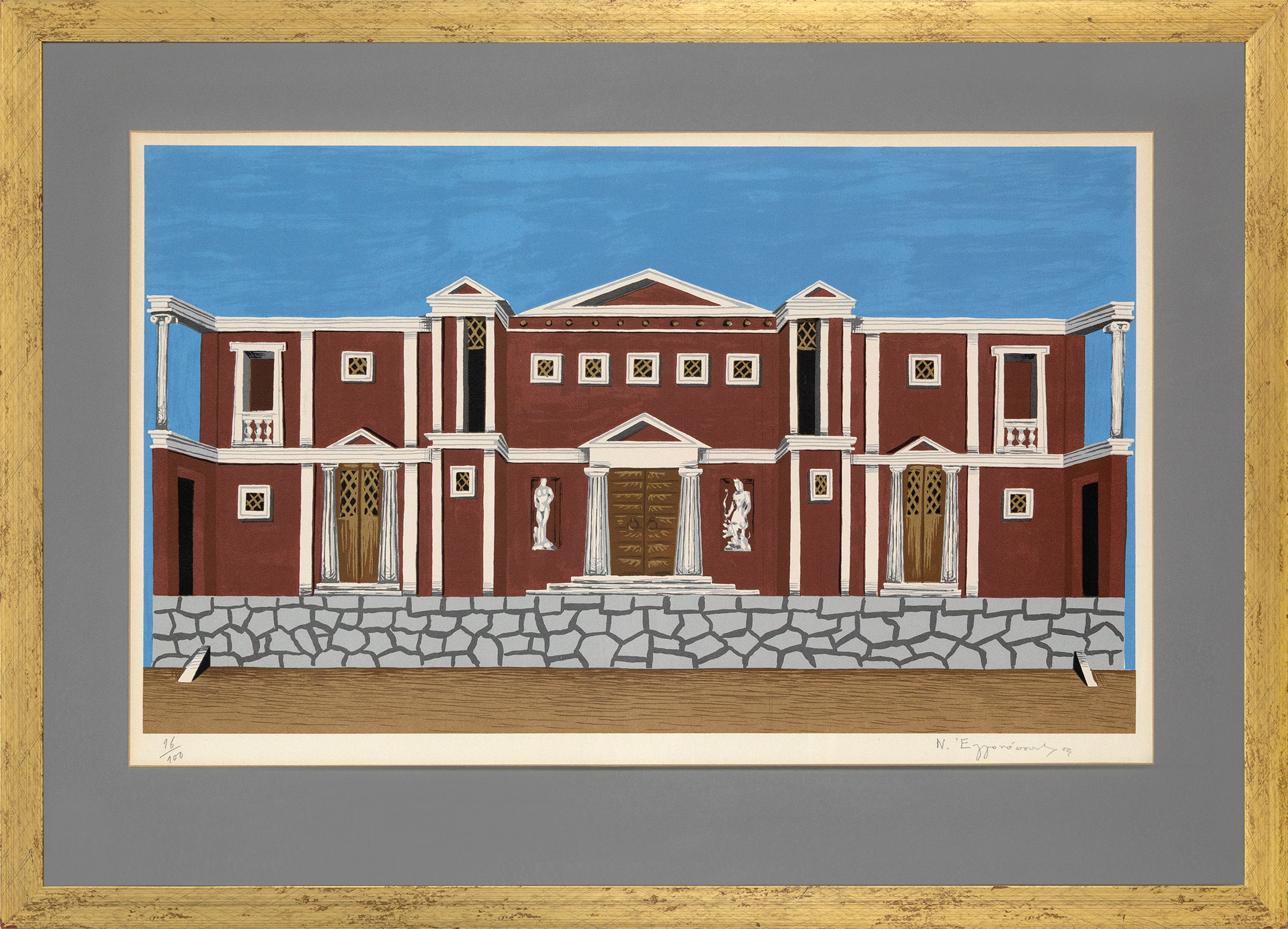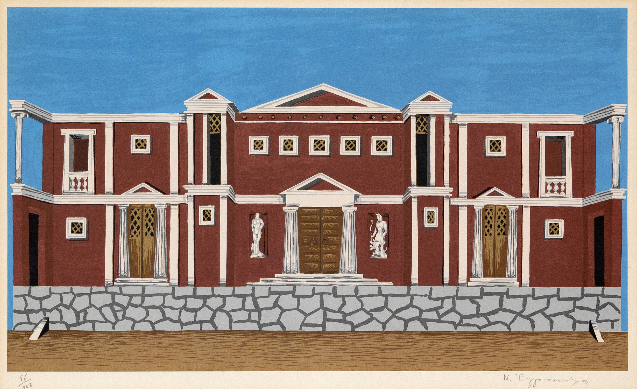 Μεταξοτυπία, 395 x 675 mm. Έκδοση σε 100 αντίτυπα, αρίθμηση και υπογραφή στο κάτω περιθώριο με μολύβι. Σε κορνίζα.