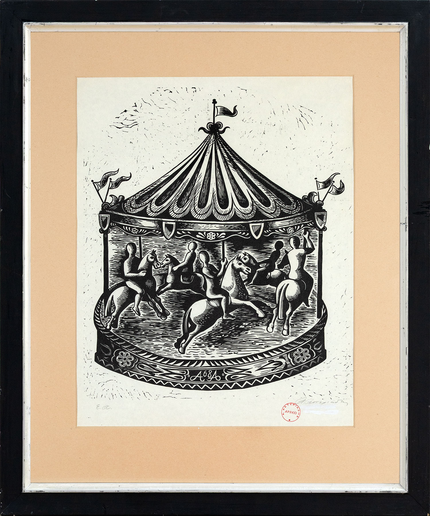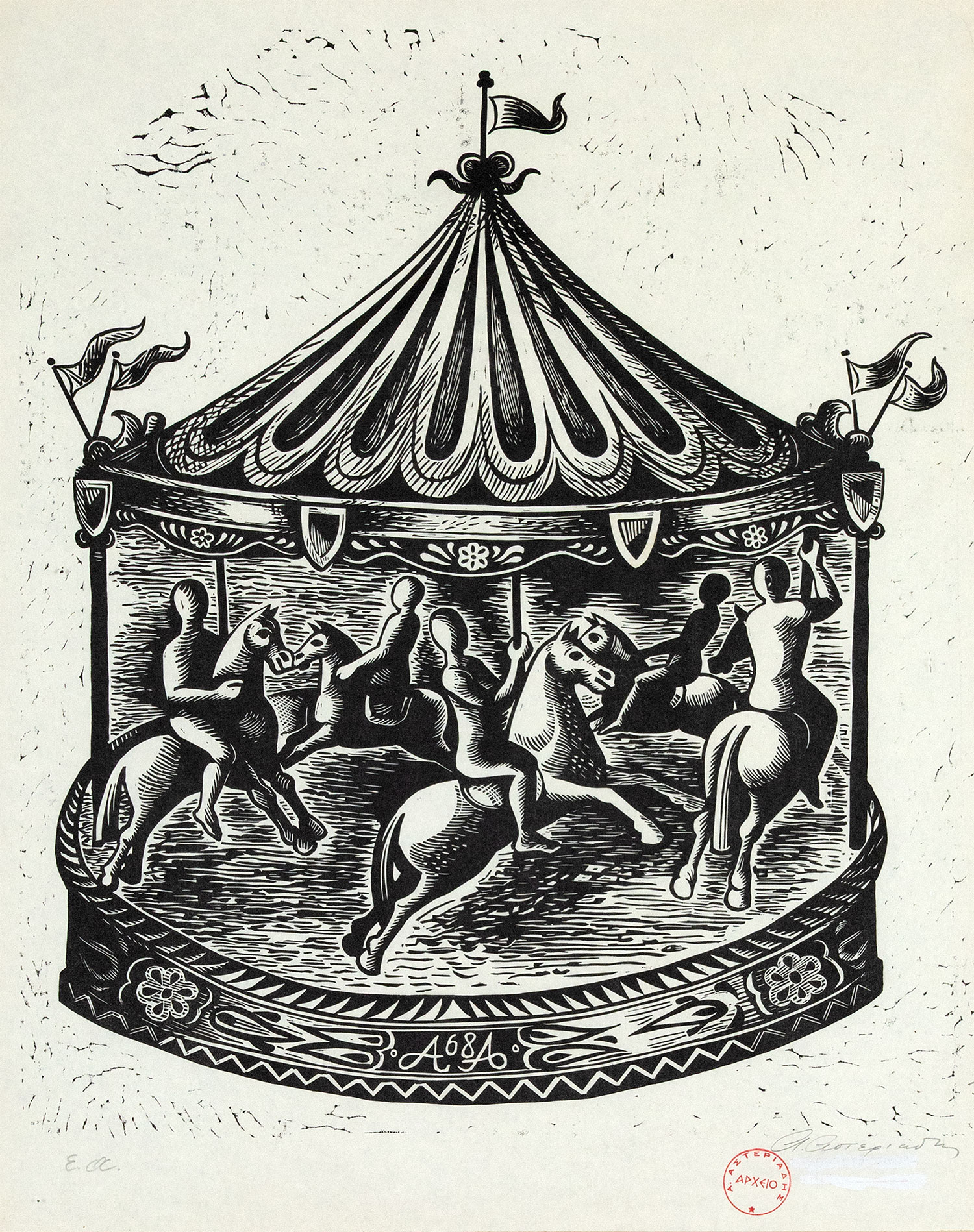 Λινόλαιο, 420 x 355 mm. Η ένδειξη «e. a.» και υπογραφή στο κάτω περιθώριο με μολύβι, υπογραφή με αρχικά και χρονολογία στην πλάκα, σφραγίδα στο κάτω περιθώριο: «Α. ΑΣΤΕΡΙΑΔΗΣ / ΑΡΧΕΙΟ». Σε κορνίζα.