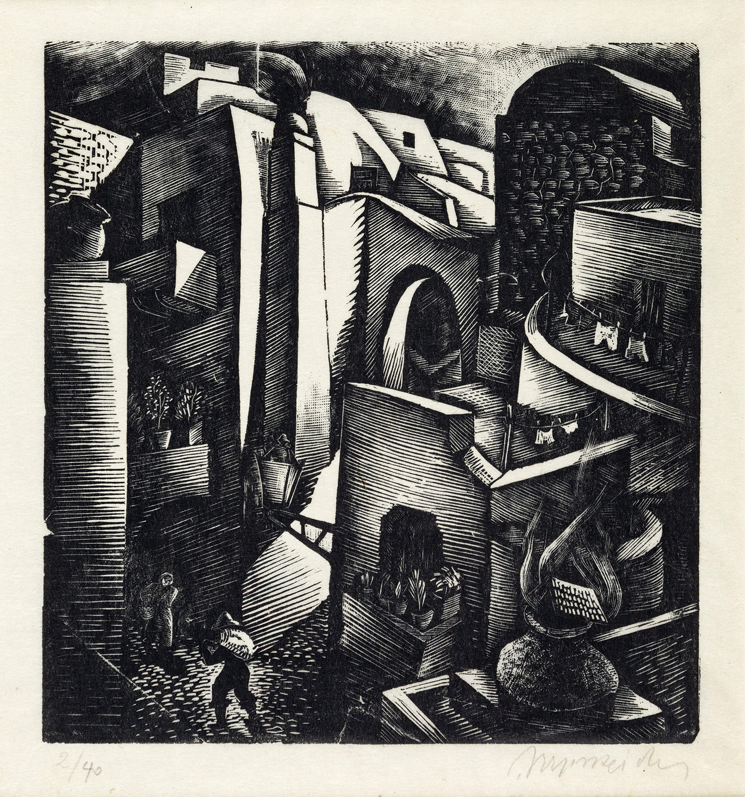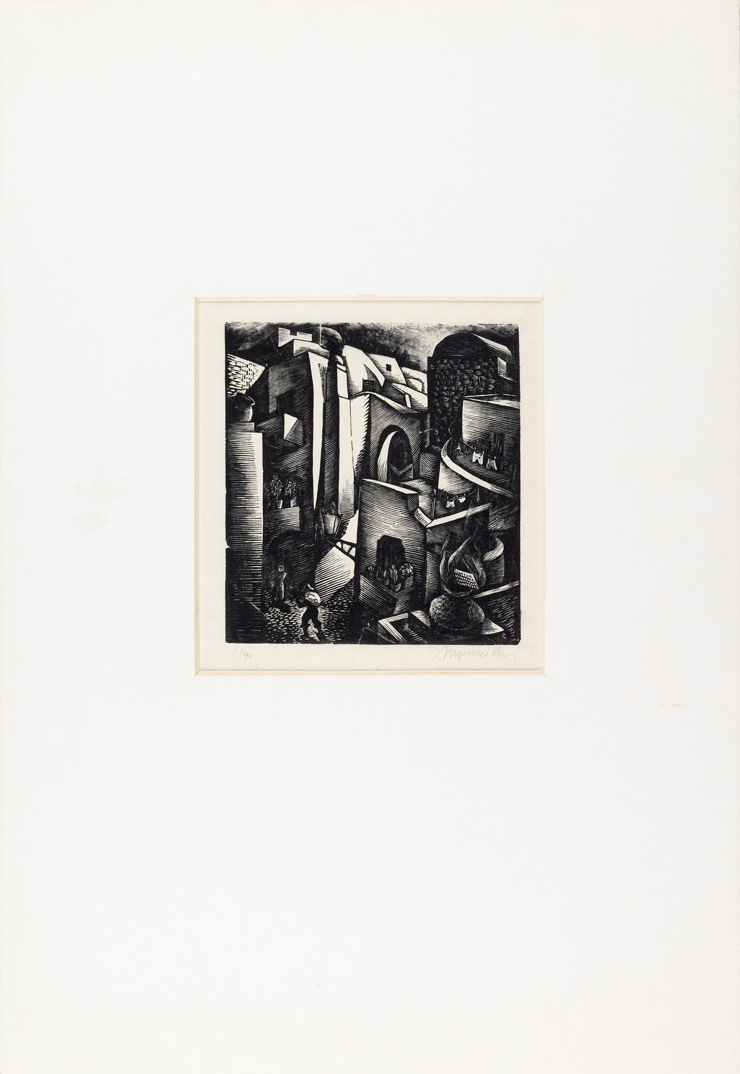 Ξυλογραφία σε όρθιο ξύλο, 147 x 138 mm. Έκδοση σε 40 αντίτυπα, αρίθμηση και υπογραφή στο κάτω περιθώριο με μολύβι. Σε πασπαρτού. Βλ. Ἑλληνική χαρακτική, [κατάλ. της Α´ Πανελ. Έκθεσης Χαρακτικής], Αθήνα 1938, αρ. 10.