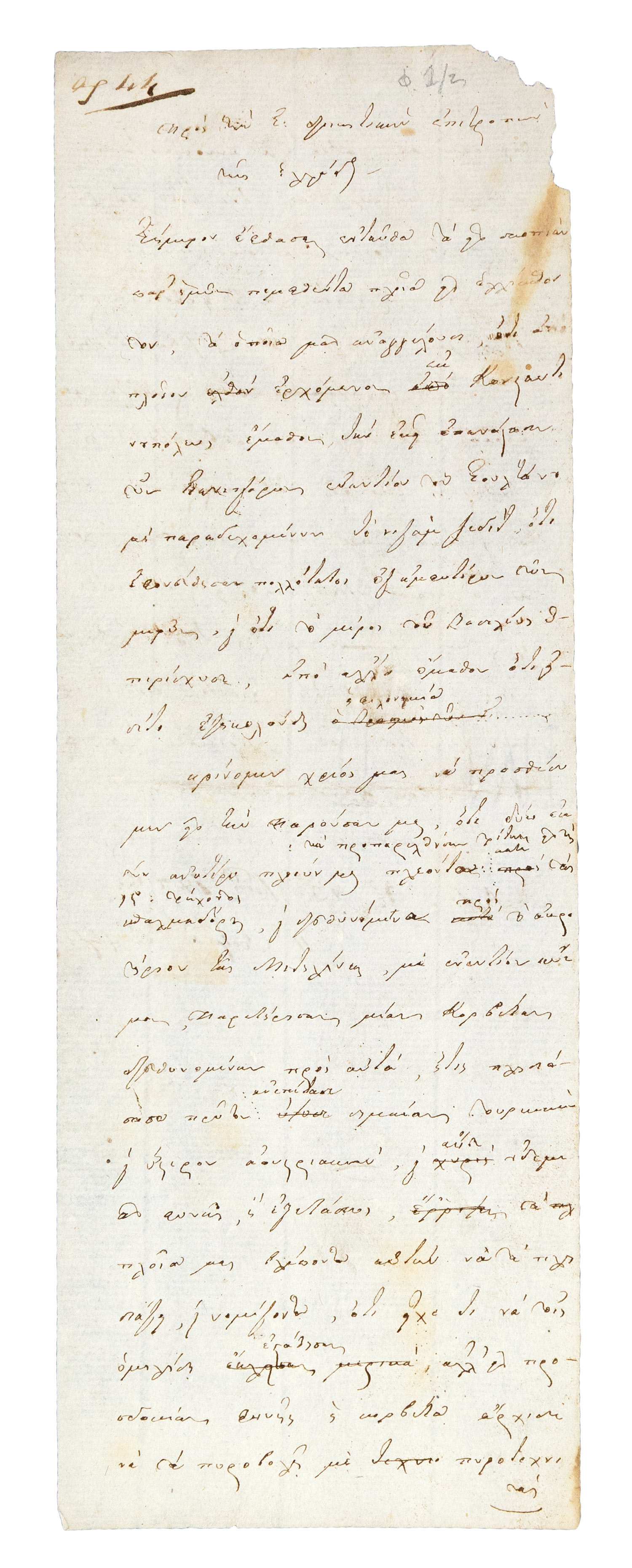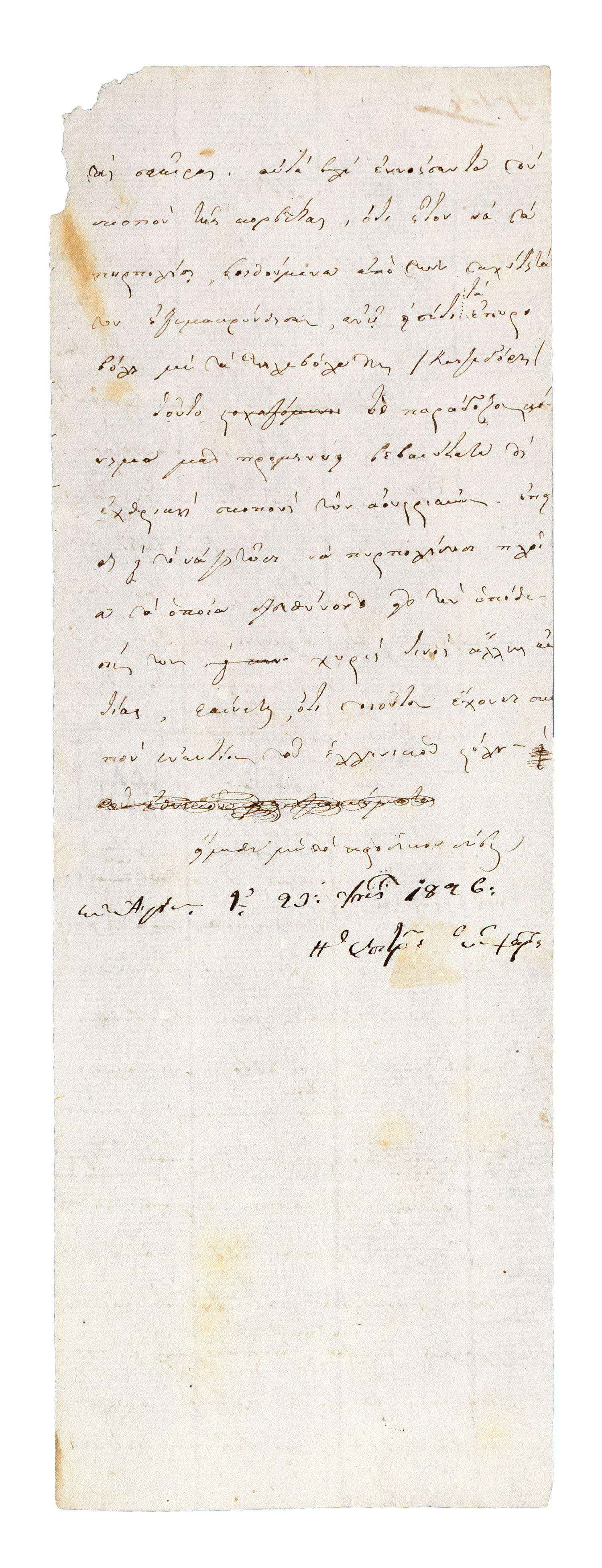 Μονόφυλλο, 320 x 110 mm. • Μεταδίδονται εἰδήσεις ἀπὸ πλοῖα ποὺ προέρχονταν ἀπὸ Κωνσταντινούπολη περὶ ἐπαναστάσεως τῶν Γενιτσάρων καί ειδήσεις γιά κινήσεις πλοίων κοντὰ στὴ Μυτιλήνη, μεταξὺ τῶν ὁποίων καὶ αὐστριακά.