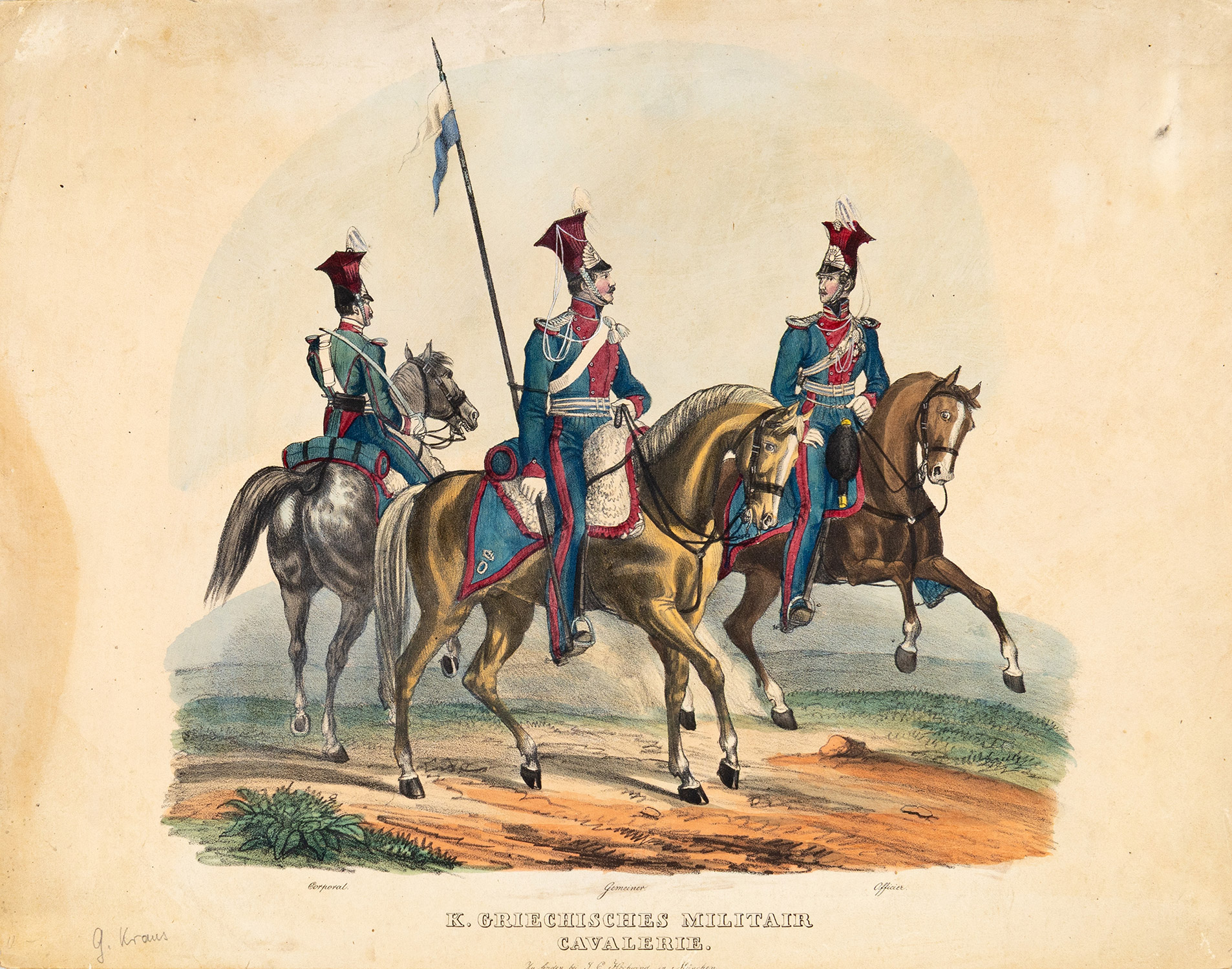 Λιθογραφία, 273 x 300 mm. (λίγο λερωμένη, εντονότερος λεκές στο αριστερό περιθώριο). Σχεδιασμένη και χαραγμένη από τον G. Kraus, επιχρωματισμένη με το χέρι. Σε πασπαρτού. Pressler 609.
