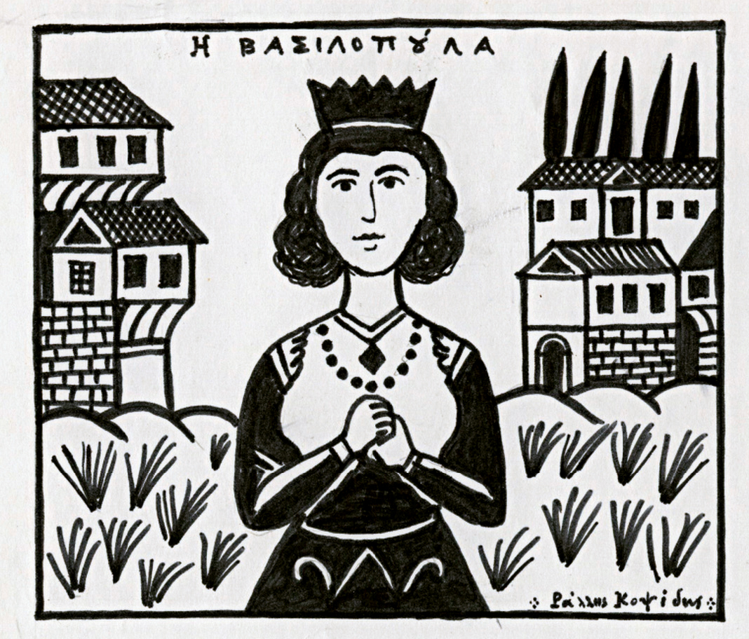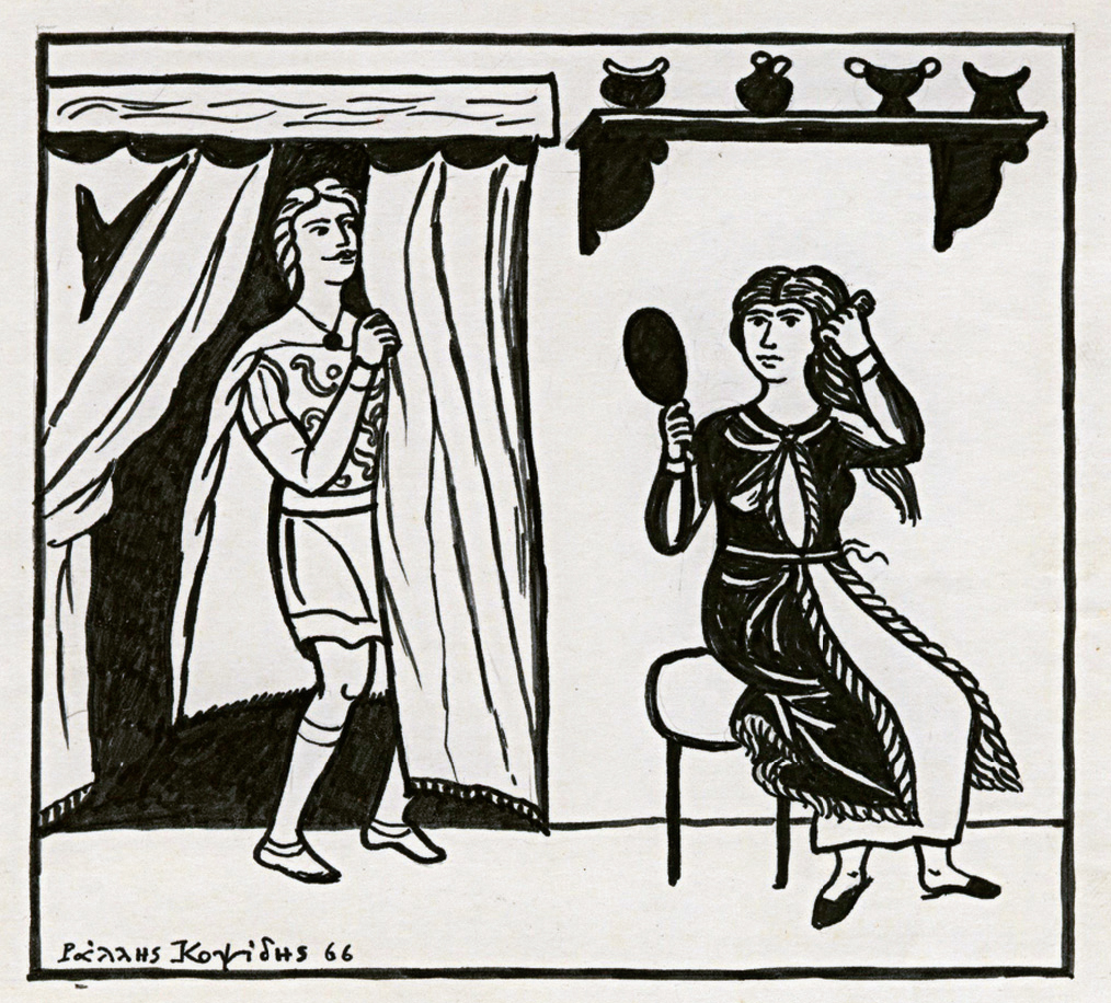 Πέντε σχέδια γιά τήν εἰκονογράφηση τῆς συλλογῆς «Μαγικά παραμύθια τοῦ ἑλληνικοῦ λαοῦ» (ἐκλογή Γ. Ἰωάννου, Ἀθήνα 1966).