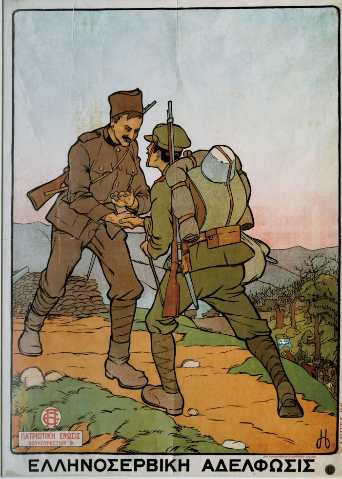 Χρωμολιθόγραφη ἀφίσα, 595 x 450 mm. Σέ κορνίζα.