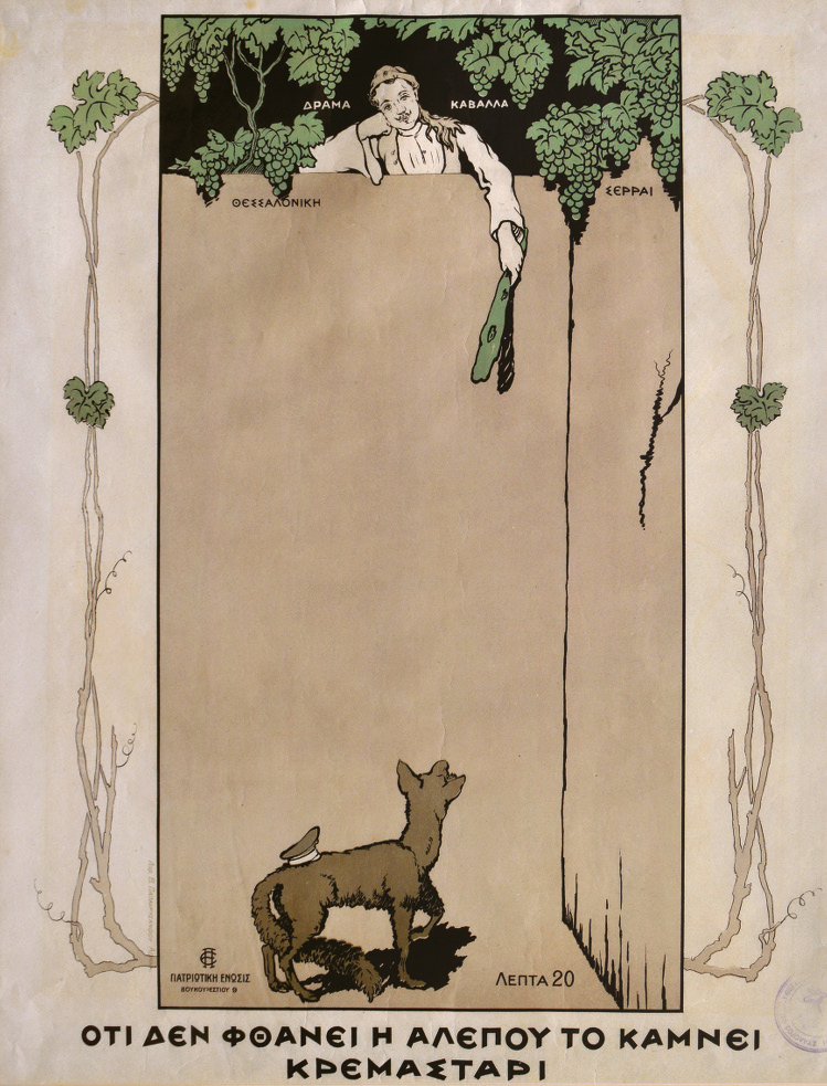 Χρωμολιθόγραφη ἀφίσα, 550 x 450 mm. Σέ κορνίζα.